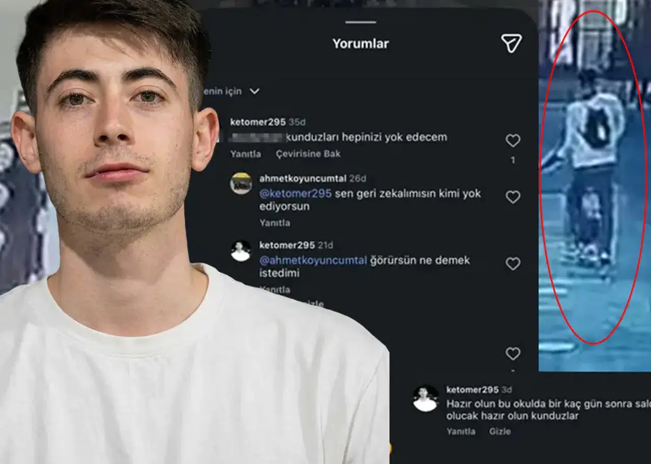 Tehditler yağdırdı. Okulun eski öğrencisi olduğu ve 9. sınıfta açık öğretime geçiş yaptığı belirtilen Ket'in okulun sosyal medya hesaplarına tehdit mesajları attığı belirlendi.