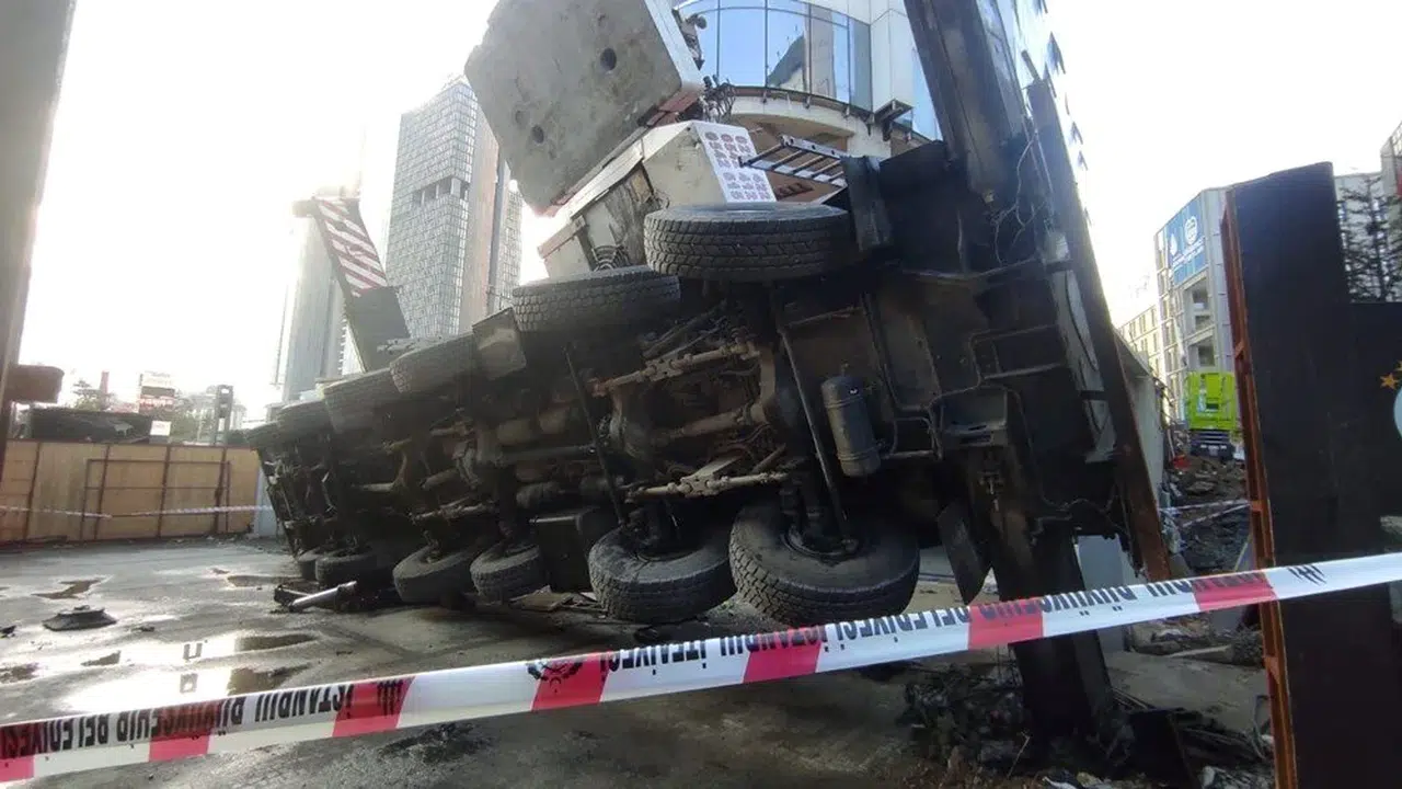 İstanbul'un Şişli ilçesi Mecidiyeköy'de rezidans inşaatında bulunan yaklaşık 50 metre yükseklikteki vinç devrildi.