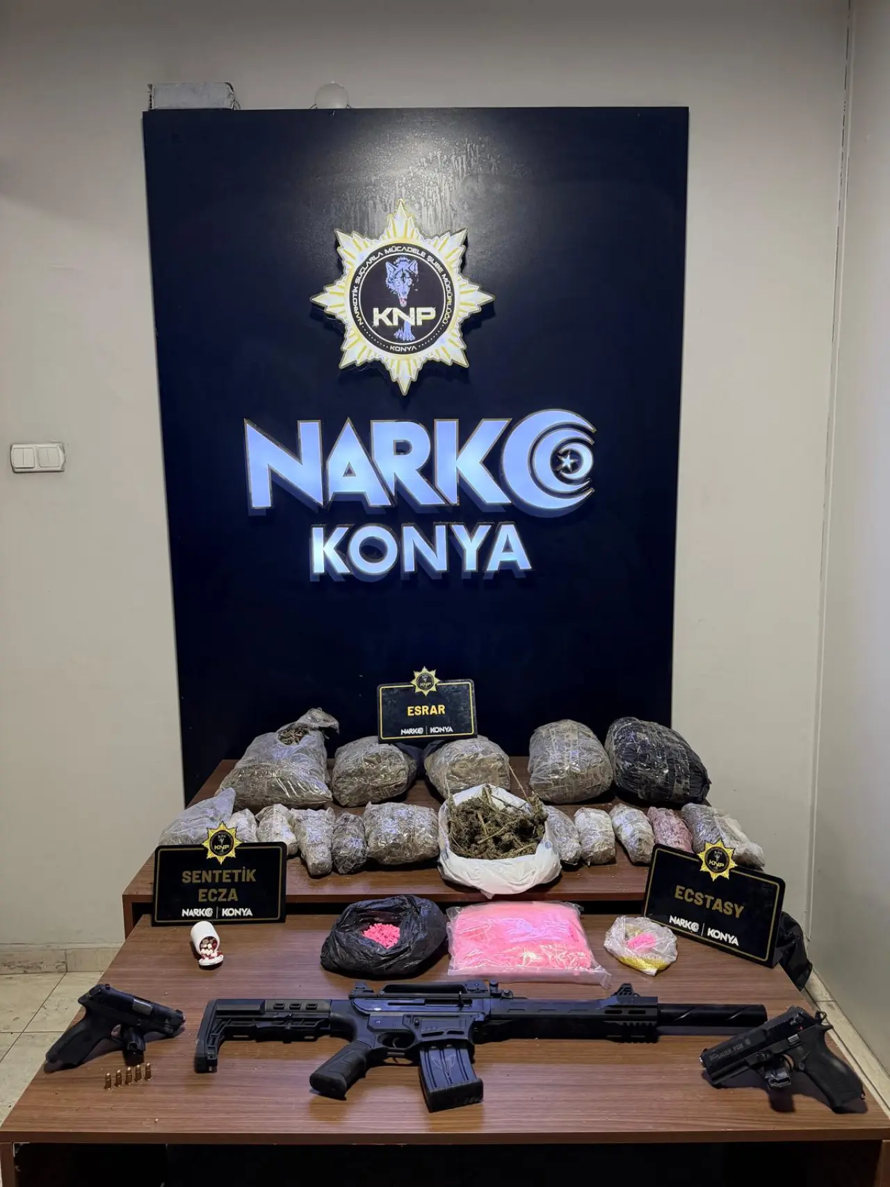 Konya İl Emniyet Müdürlüğü Narkotik Suçlarla Mücadele Şube Müdürlüğü ekipleri, il genelinde uyuşturucu ticareti ve kullanımının engellenmesine yönelik yürüttüğü çalışmalar kapsamında dev bir operasyon serisine imza attı. 05 Aralık – 24 Aralık 2025 tarihleri arasında uyuşturucu satıcılarına yönelik çok sayıda adrese baskınlar düzenlendi.