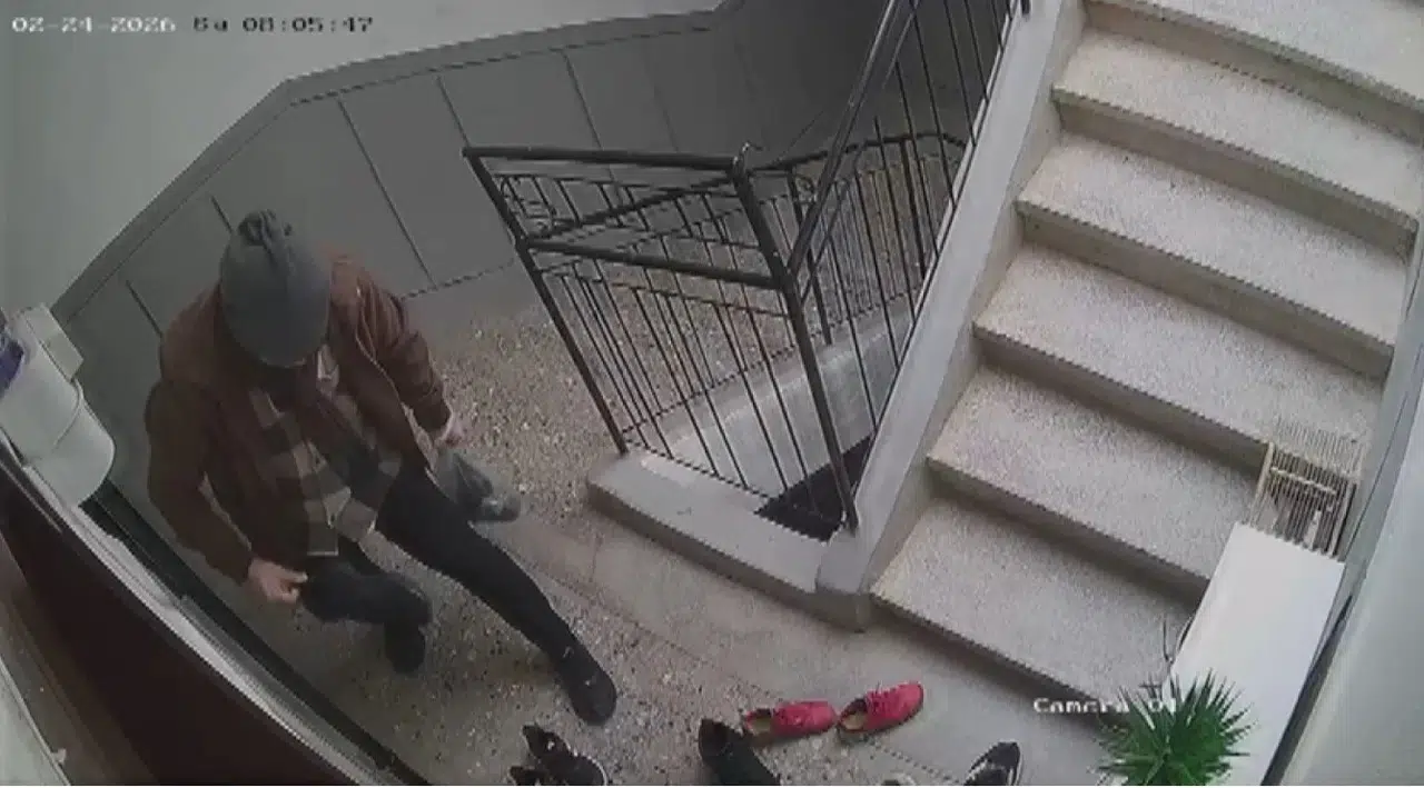 Güvenlik kamerasına yansıyan görüntülerde, kimliği belirsiz bir kişinin daire önüne gelerek tek tek ayakkabıların markalarına baktığı, beğenmemesi üzerine ayakkabıları bırakarak dolap üzerindeki süs çiçeğini aldıktan sonra ayakkabı dolabı içerisindekileri de kontrol edip dairenin kapısından ayrıldığı görülüyor.