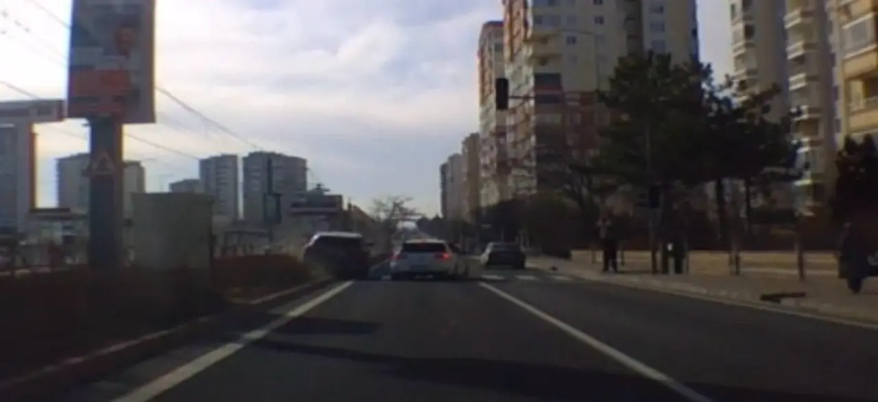 Ayrıca, aracın bir otomobilin arkasından ilerlediği ve birden refüje çıktığı kazanın görüntüleri de bir aracın yol kamerasına yansıdı.