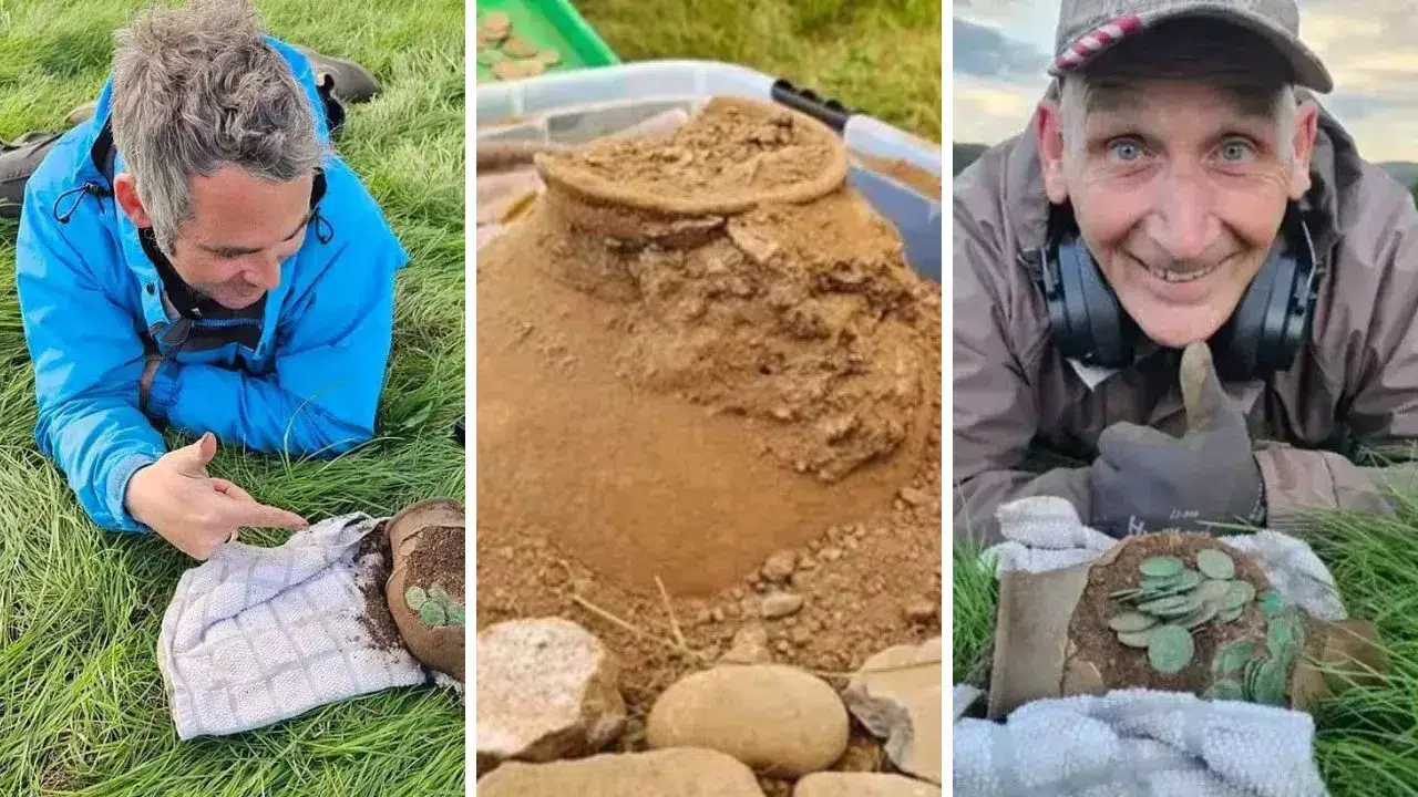 Hobi olarak çıktıkları gezide tüm gün bir şey bulamayan ikili, bölgeden ayrılacakları sırada gelen sinyalle şaşkına döndü. Sinyal aldıkları noktanın çevresini kazmaya başlayan iki arkadaş toprağın yaklaşık 30 santimetre altında kilden yapılmış iki çömlek tespit etti.