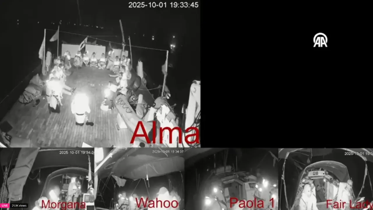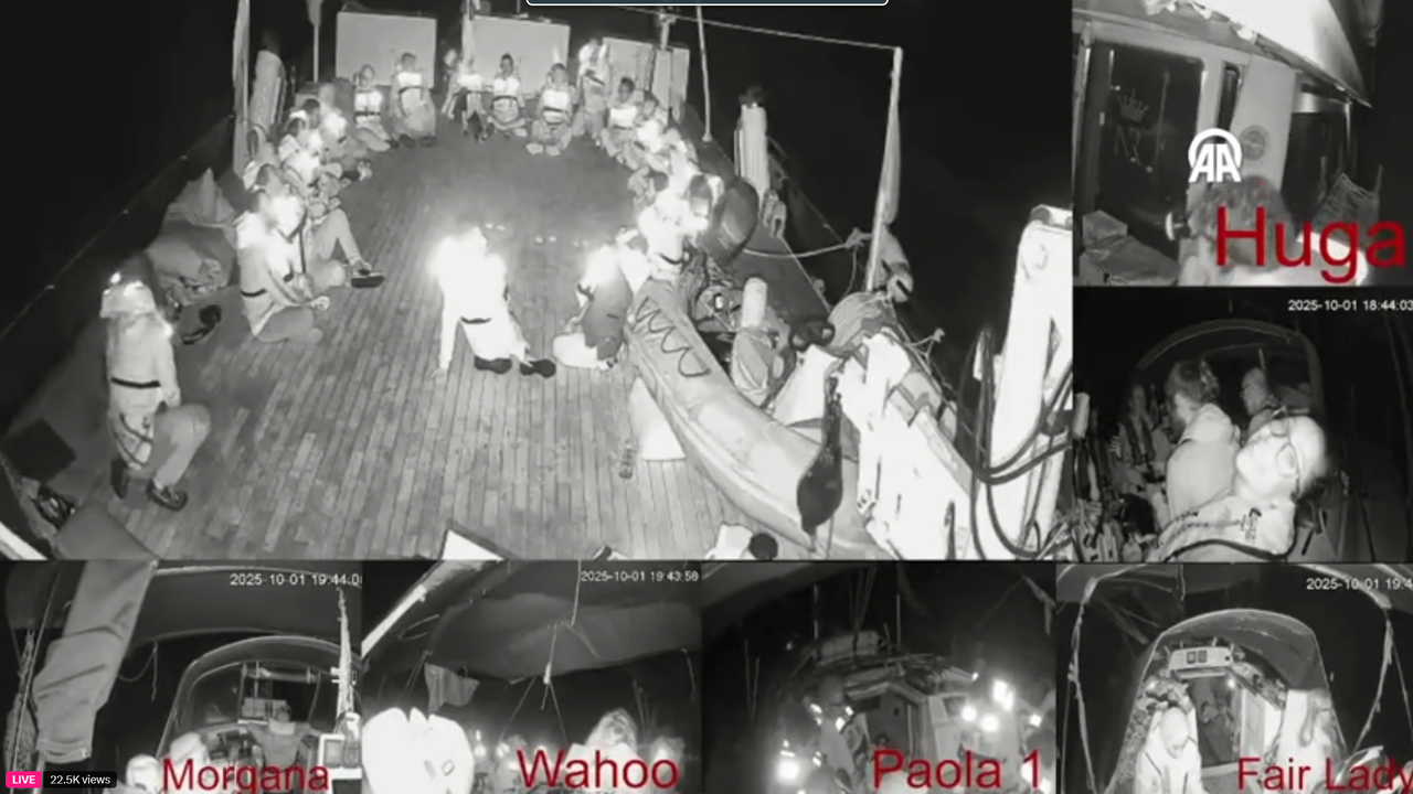 20.00 - Sumud Filosu'nun sosyal medya hesabından yapılan paylaşımda onlarca İsrail savaş gemisinin filoya yaklaştığı ve bir saat içinde müdahale beklendiği belirtildi.