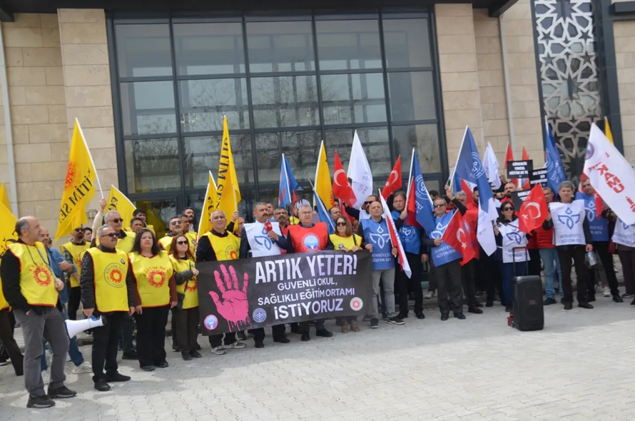 Şanlıurfa’nın Siverek ilçesinde bir lisede yaşanan silahlı saldırıyla ilgili Eğitim İş kolundaki sendikalardan, Eğitim-İş Konya Şubesi, Eğitim-Sen Konya Şubesi ve Hürriyetçi Eğitim-Sen Konya Şubesi yaptıkları ortak basın açıklamasında saldırıya tepki göstererek; bu saldırı, eğitimin ve öğretmenin yıllardır sistemli biçimde değersizleştirildiğini ortaya koyduğunun mesajını verdiler.