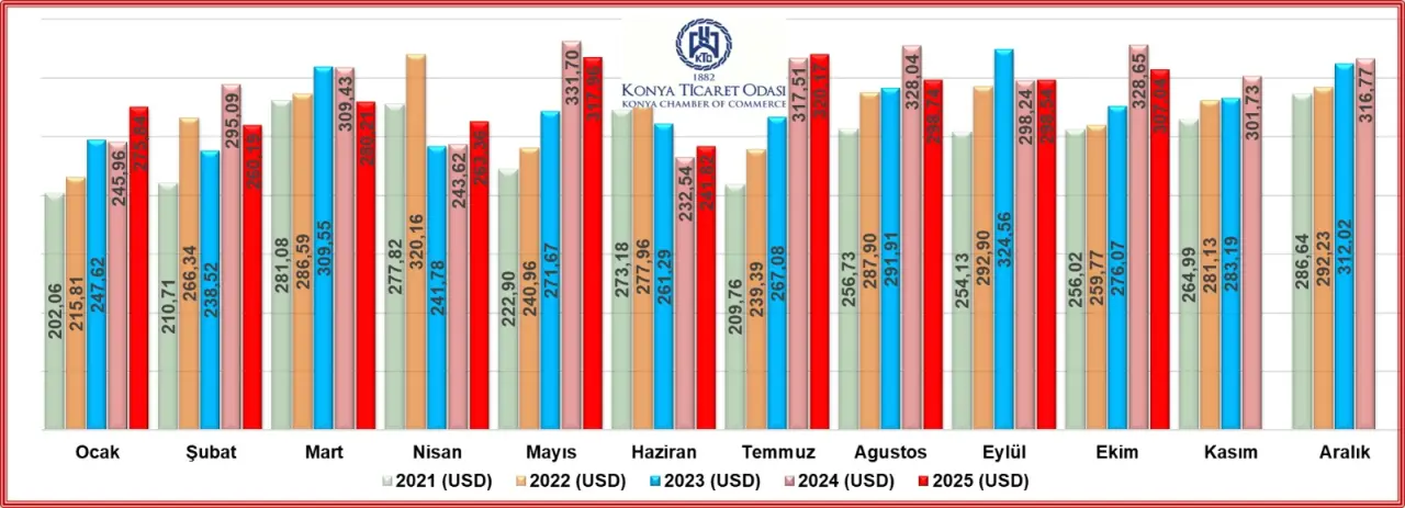Konya'da 2025 yılı Ekim ayı ihracat rakamları belli oldu. Buna göre Ekim ayında ihracat 307 milyon dolar olarak gerçekleşti.