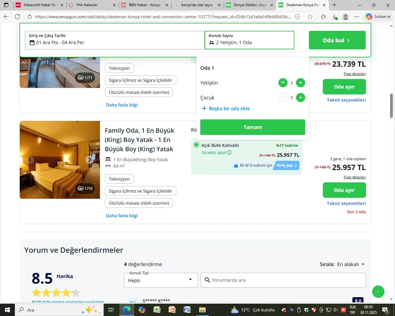 Konya'da İhtifaller öncesi gecelik konaklama bin 400 liradan başlıyor. Otel fiyatları 25 bin liraya kadar çıkabiliyor
