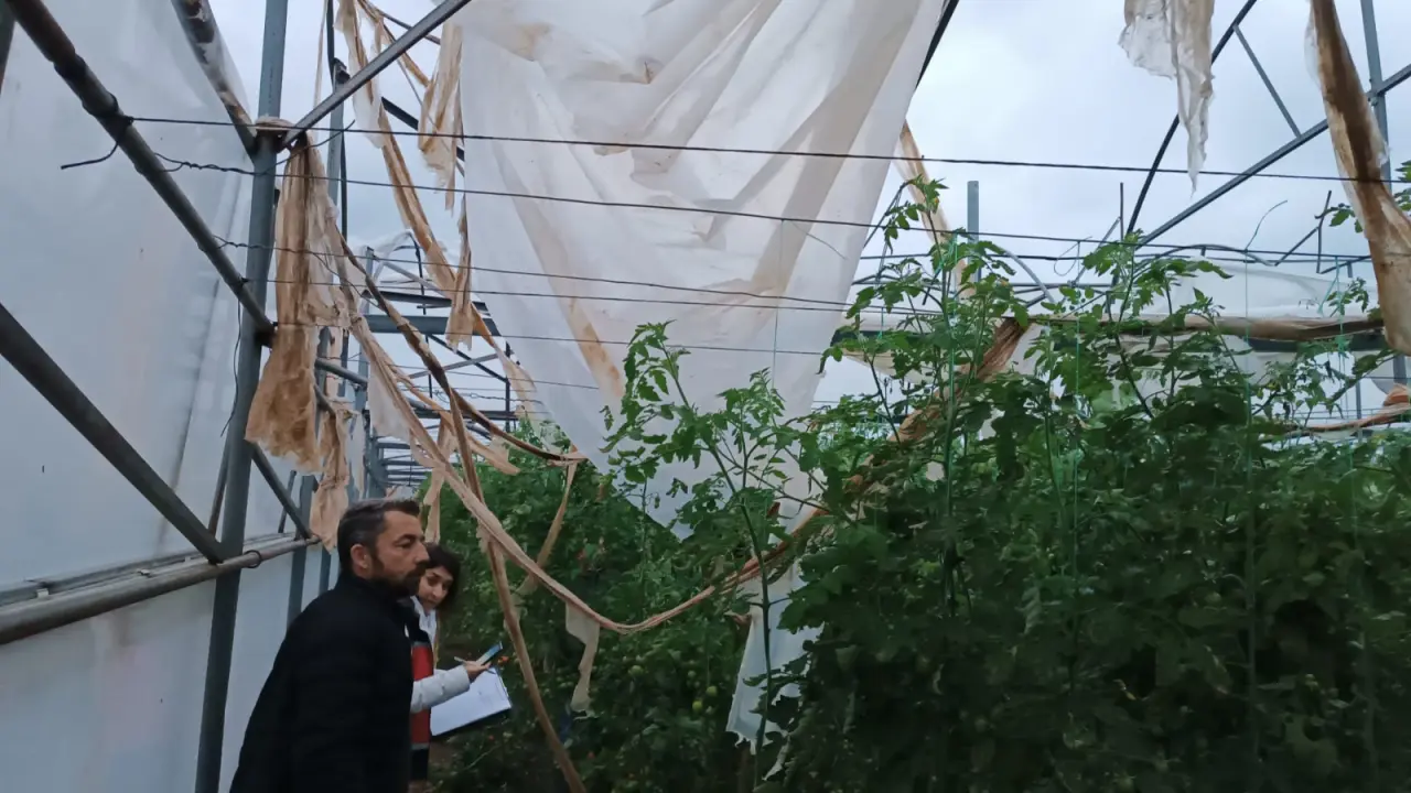 Hortum Antalya'da etkili oldu… Yavruoğlan ve Gündoğdu mahallelerinde meydana gelen hortumda, 4 seranın demir aksamları kırıldı, çatıları çöktü ve naylon kaplamaları parçalandı.