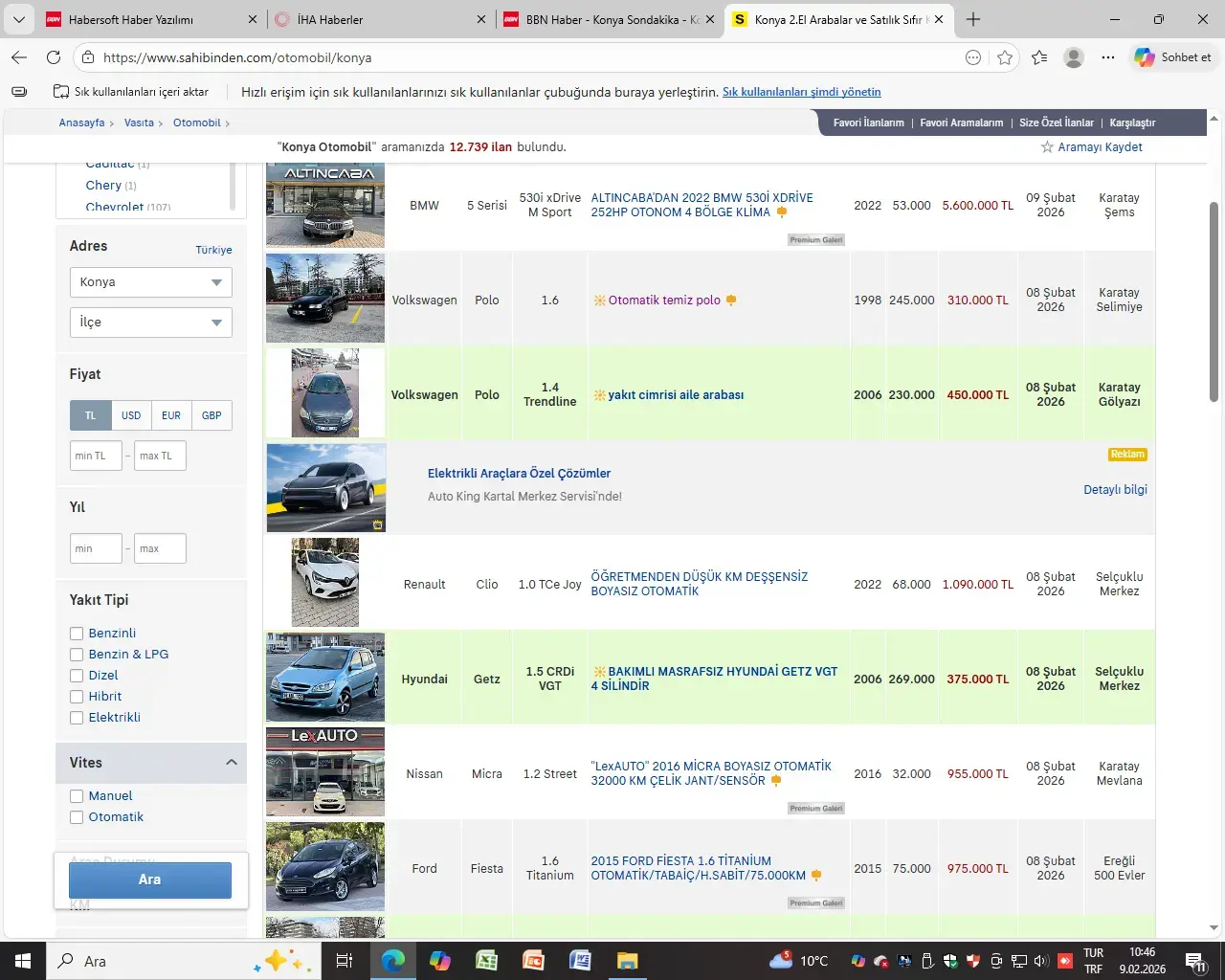 İşte Konya'daki en pahalı ikinci el araçlardan bazıları:
