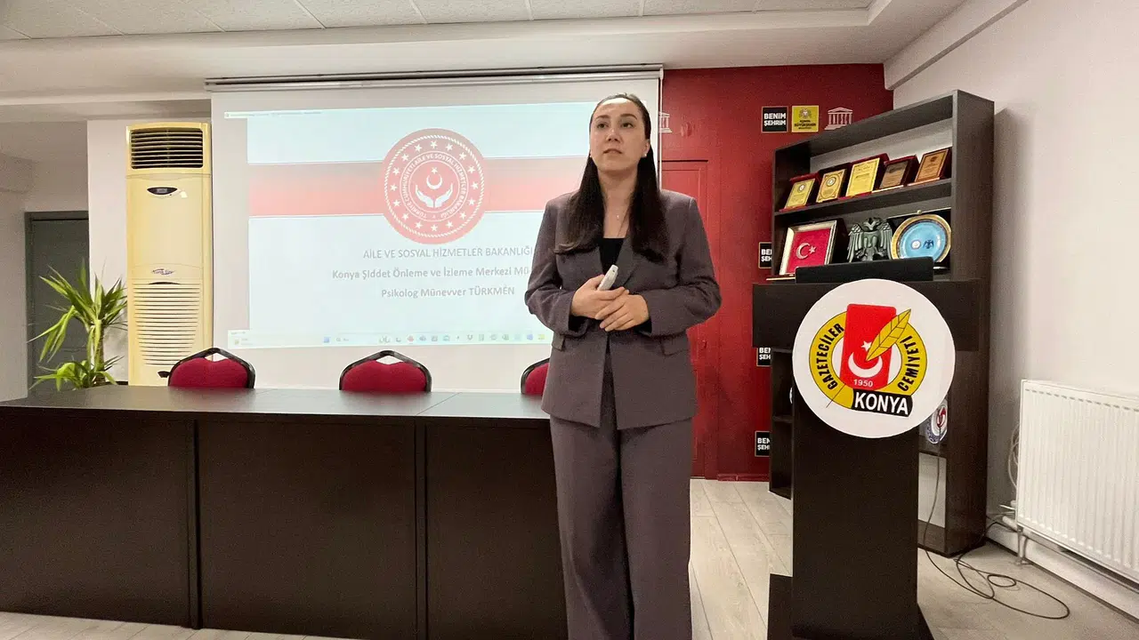 Programda konuşan Konya Aile ve Sosyal Hizmetler İl Müdürlüğü’ne bağlı Şiddet Önleme ve İzleme Merkezi (ŞÖNİM) Psikoloğu Münevver Türkmen, gazetecilere kadına yönelik şiddetin ve erken yaşta evliliklerin önlenmesine ilişkin kapsamlı bilgiler aktardı. Türkmen, şiddet uygulayana yönelik önleyici tedbirleri sıralayarak, “Şiddetin ortaya çıkmasını engellemek için belirli söz ve davranışlardan kaçınmak, mağdura yaklaşmamak, evden uzaklaştırma kararı almak, evin mağdura tahsisi, şiddet uygulayan kişinin gelirinin mağdura aktarılması için tedbir nafakası bağlanması gibi uygulamalar devreye giriyor. Boşanma davası yoksa velayet hakkının tespiti de bu süreçte değerlendiriliyor.” dedi. Şiddet mağdurlarına yönelik koruyucu tedbirlerden de bahseden Türkmen, “Geçici barınma yeri sağlanması, hayati tehlike durumlarında geçici koruma kararı verilmesi, maddi yardım desteği, kreş imkanı ve iş yeri değişikliği gibi önlemler alınabiliyor.” ifadelerini kullandı.