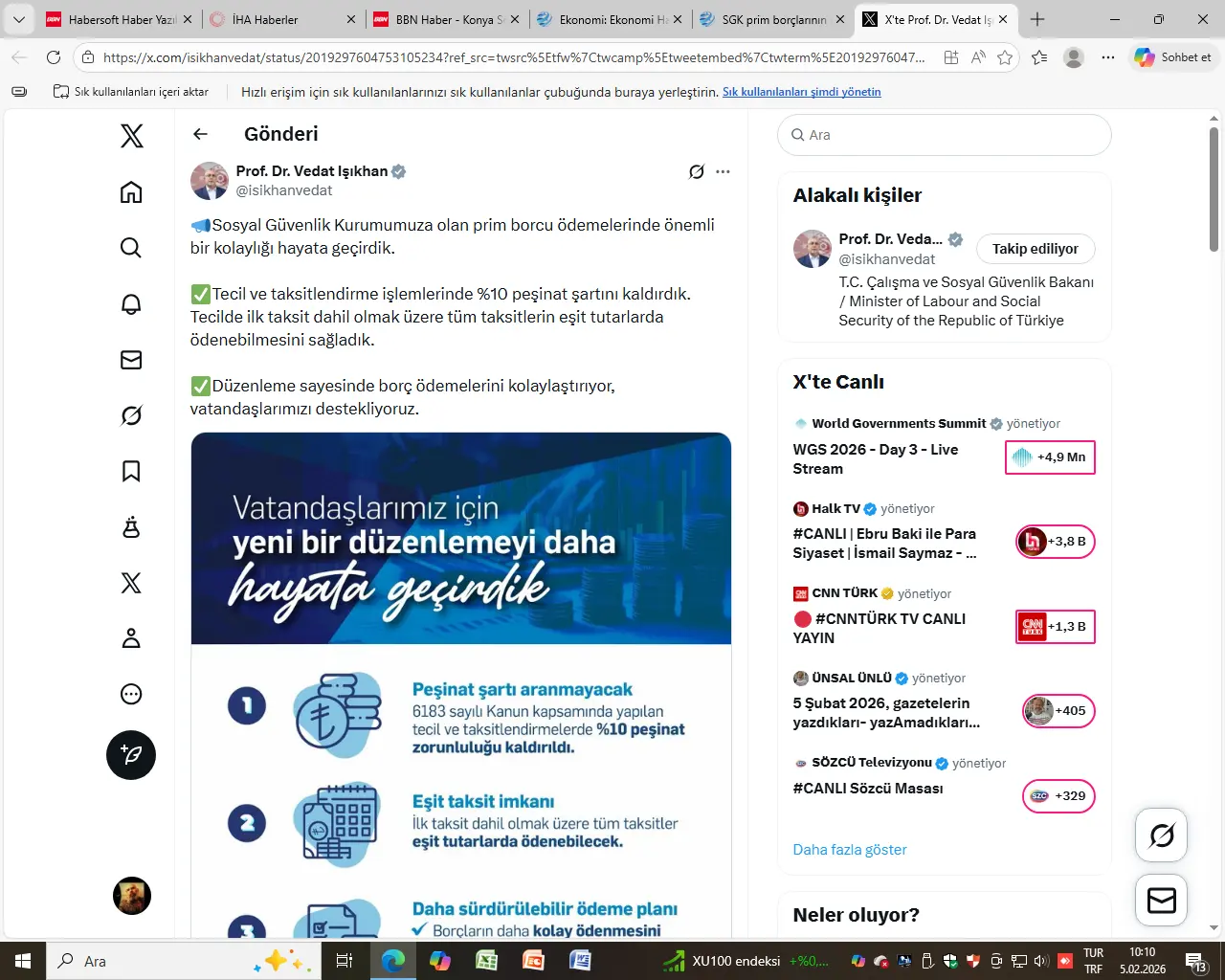 Çalışma ve Sosyal Güvenlik Bakanı Vedat Işıkhan, Sosyal Güvenlik Kurumu’na (SGK) olan prim borçlarının ödenmesine ilişkin yeni bir kolaylığın hayata geçirildiğini duyurdu.