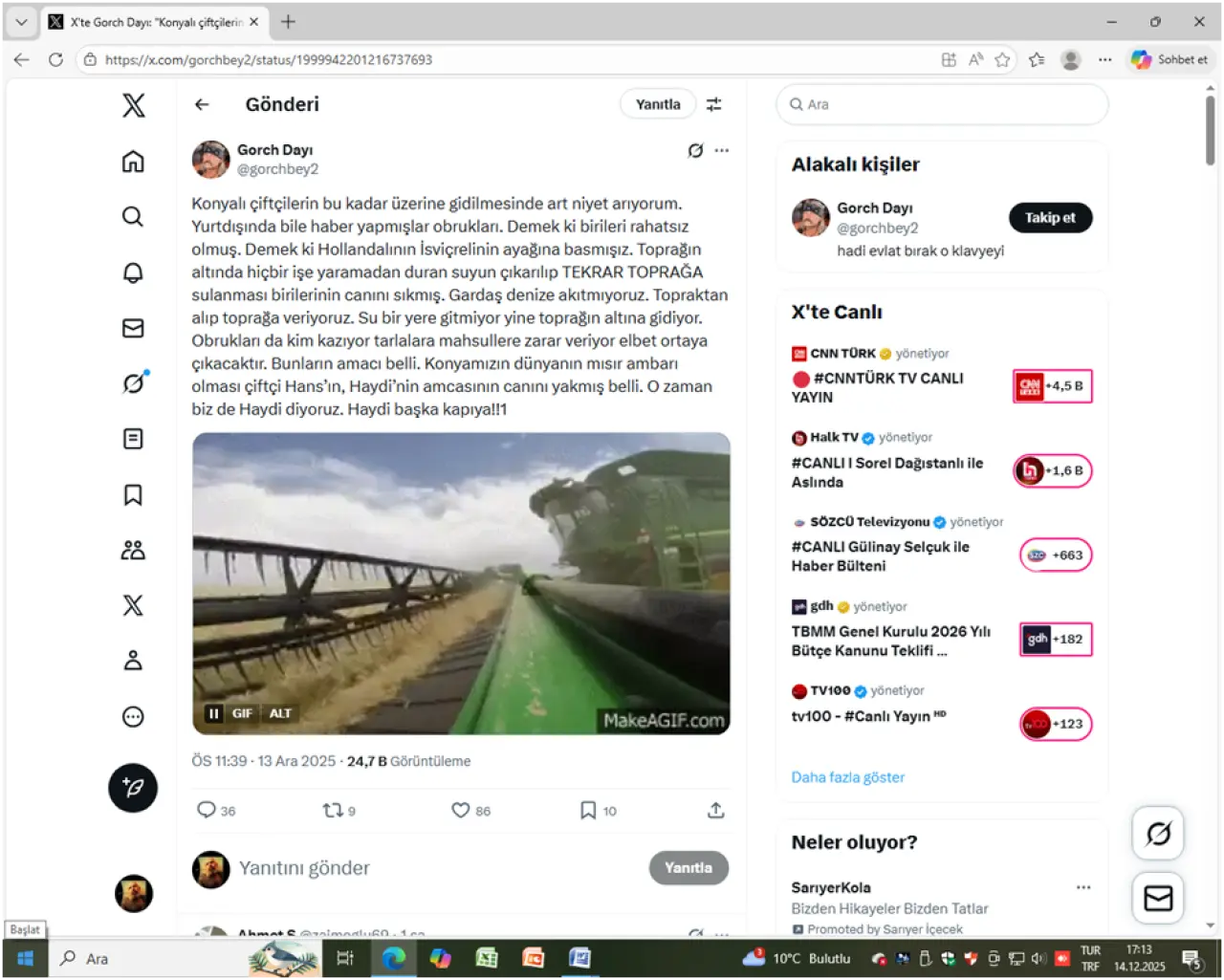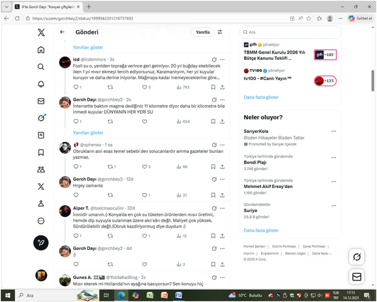 Konyalı çiftçilerle ilgili sosyal medyadaki tartışma büyüdü ve kentteki obruk oluşumu sorgulanmaya başlandı.