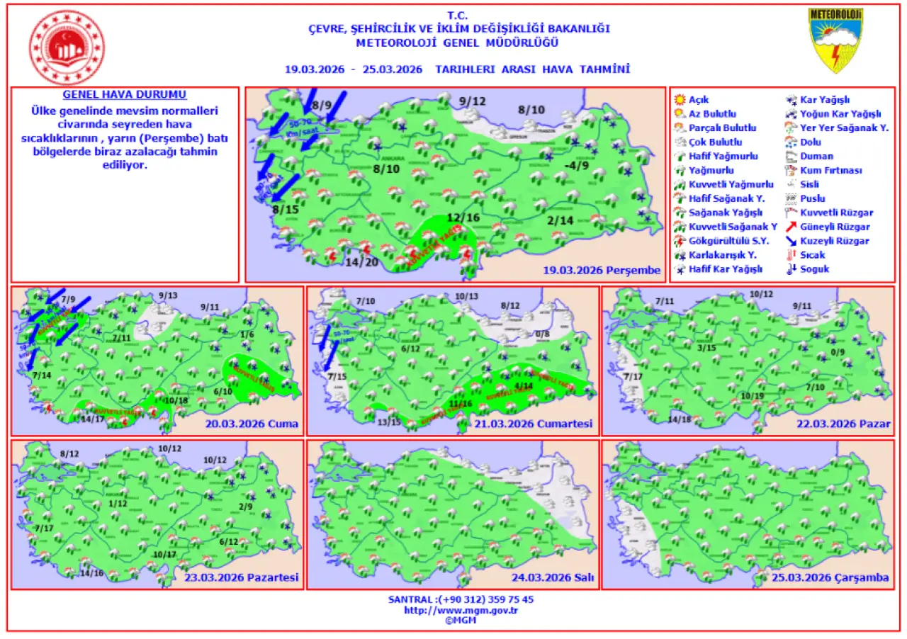 Meteoroloji Genel Müdürlüğü (MGM) tarafından yapılan tahminlere göre, yarın ülke genelinin yağışlı geçmesi, yağışların genellikle yağmur ve sağanak, kıyı kesimlerde gök gürültülü sağanak, iç ve doğu kesimlerde yer yer karla karışık yağmur ve kar şeklinde olması bekleniyor.