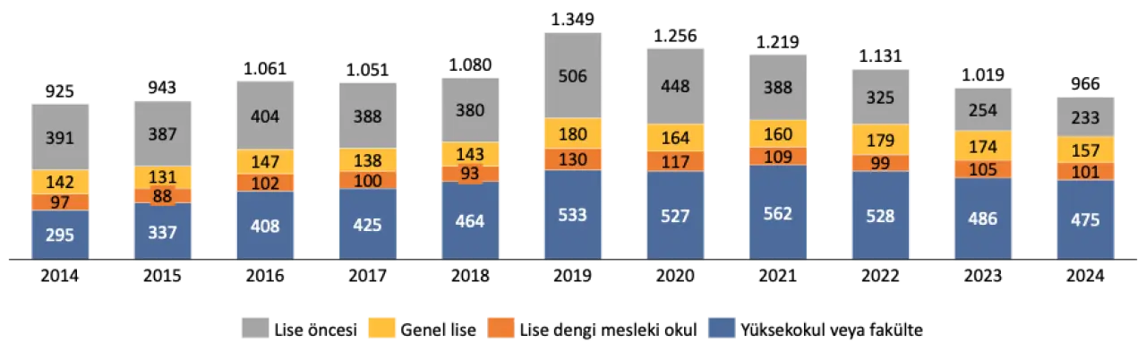 Bir başka dikkat çekici gelişme, üniversite sınavına katılım ve tercih davranışlarında yaşanıyor. 2025 yılında 1,1 milyon öğrencinin liseden mezun olduğu varsayıldığında, bunların sadece 840 bini YKS’ye başvurdu. Başvuranların 812 bininin puanı hesaplandı; ancak yalnızca 394 bini tercih yaptı ve 234 bini yerleşti. Üstelik yerleşenlerin 13 bini açıköğretim tercihi yaptı. Bu durum, üniversite eğitiminin cazibesinin azaldığını, artan maliyetler ve yurtdışı seçeneklerinin tercihleri etkilediğini düşündürüyor.