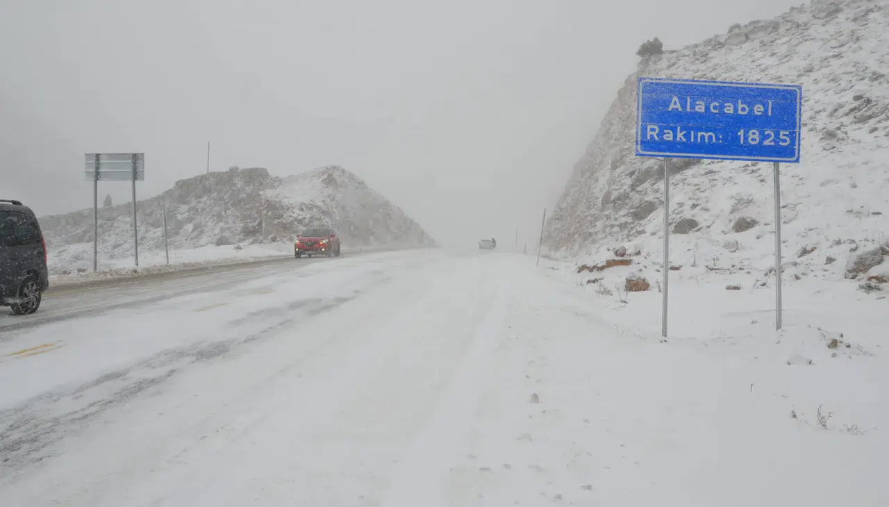 Konya-Antalya karayolunda yoğun kar yağışı etkisini sürdürüyor. Karayolları ekipleri sürücüler için oldukça çetin olan bu yola açık tutmak için yoğun mesai harcıyor. Yol tüm araçlar için açık ancak sürücülerin gerekmedikçe yola çıkmaması ve mutlaka yanlarında zincir bulundurmaları isteniyor.