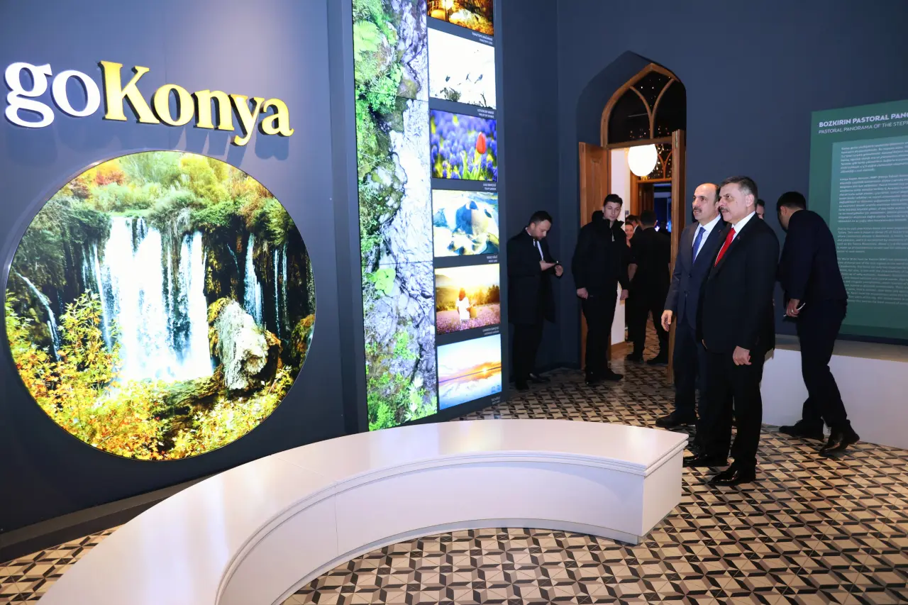Büyükşehir Taş Bina’daki Konya Dijital Tanıtım Merkezi ile Siyer Sergisi’ni de inceleyen Bakan Çiftçi, Başkan Altay’dan bilgi aldı.