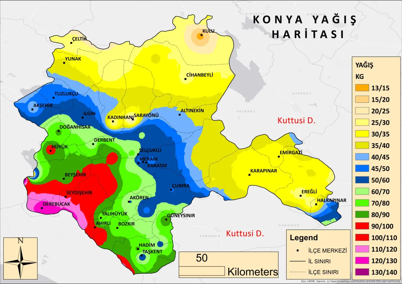 Ereğli, Yalıhüyük, Ahırlı, Bozkır ve Halkapınar 6-10 kg potansiyele sahip. Aksaray, Emirgazi, Çumra, Karapınar, Akören, Karatay kırsal, Eskil, Seydişehir, merkez, Kadınhanı, Altınekin, Doğanhisar, Derbent, Ilgın ve Akşehir'de ise 2-6 kg arası potansiyel bulunmaktadır. Diğer konumlardan ise çisenti şeklinde yağış bilgisi gelebilir. Karaman ve bazı ilçeler dışında bu yağışlı sistem ciddi bir atak değildir. Büyük bir beklenti oluşmasın" ifadelerine yer verdi.