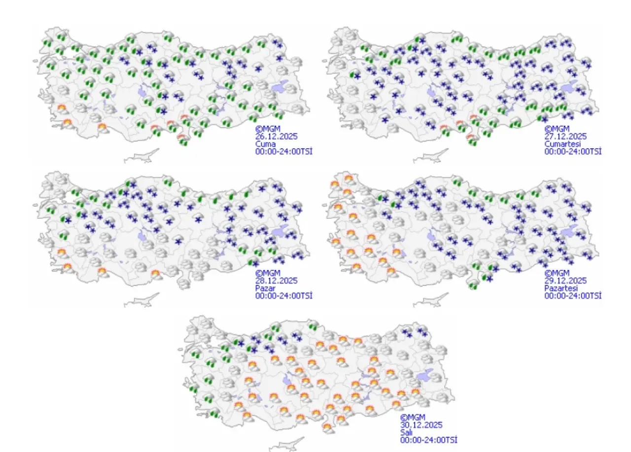 Kar bekleyenlere kötü haberi veren Demir, “Günlerdir konuşulan ay sonu sistemi bölgemiz adına netleşti diyebilirim. Bugün gerçekleşecek hafif ve orta kuvvette yağışlardan sonra cumartesi günü ve pazartesi günü hafif olacak şekilde yine yağışlar bekleniyor. Öyle abartıldığı gibi bir kar yağışı bölgemizde beklenmiyor. Halk tabiri ile kuru soğuklar çekeceğimiz bir süreç bizler ile olacak. Hafif kar geçişleri, kırsalda bazı konumlarda çok hafif beyaz örtü ve uçuşan kar taneleri de cumartesi ve pazartesi günü bizlere eşlik edecektir. Bu kadar kısa sürede olumlu bir değişim olursa tekrar bilgi aktarırım. Son veriler bu şekilde” ifadelerini kullandı.