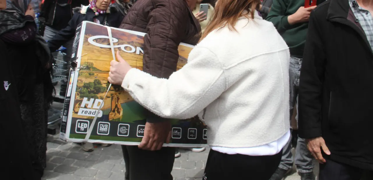 Televizyonlardan satın alabilmek için vatandaşların kolileri bırakmamak adına birbirleriyle mücadele ettiği anlar ucuzluk izdihamını gözler önüne serdi. Satışa sunulan 45 televizyon kısa sürede tükenirken, ürünü almayı başaran vatandaşlar bu kez kasa önünde uzun kuyruklar oluşturdu.