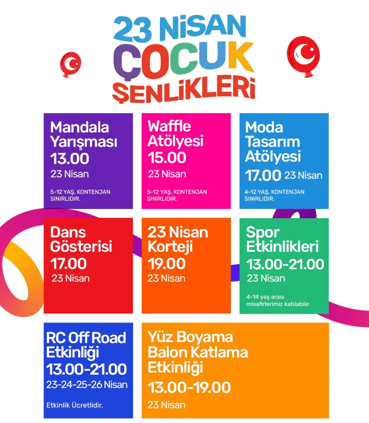 23 Nisan’a özel olarak kurgulanan program kapsamında; yaratıcı atölye çalışmaları, eğlenceli ve öğretici sahne gösterileri, çocukların keşif duygusunu geliştirecek deneyim alanları ve gün boyu sürecek kortej etkinlikleri minik misafirlerle buluşacak. Etkinlik içerikleri, çocukların hem eğlenmesini hem de sosyal ve bilişsel gelişimlerine katkı sağlamasını hedefleyecek şekilde titizlikle planlandı.