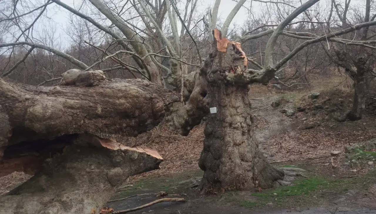 Konya'nın anıt ağaçları arasında yer alan Karayusuflu'nun heybetli çınarları 600 yılın vermiş olduğu yorgunluk, aşırı yağışların ağaç gövdesinde oluşturduğu ağırlık ve tahribat ile birlikte şiddetli rüzgarlar koca çınar ağacının gövdesini ikiye ayırdı. Rüzgar tarihi ağaçların bulunduğu mesire alanında da ciddi tahribat oluşturdu.