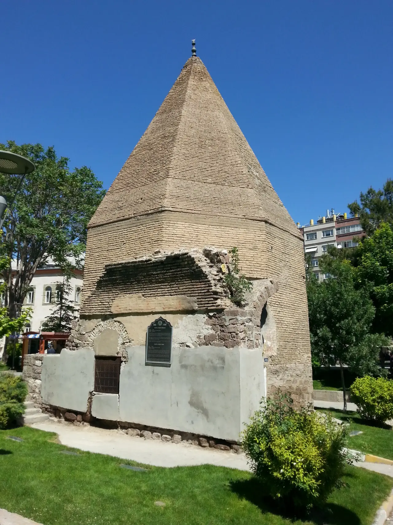 Kültürpark içerisinde; açık avlulu, revaklı ve girişin karşısında ana eyvanlı olan medresenin ana eyvanının sağında bulunan türbe günümüzde ayakta kalan tek parçası olsa da yapılacak kazılarla tarihi yapının yeniden ortaya çıkarılması ve devamında aslına uygun olarak tamamlanması planlanıyor. Günümüze ulaşan türbe yapısında Tac-ül Vezir ve torunları Celaleddin Kasım Bey ile Şeyh Sureti’nin kabirleri bulunuyor. Türbe taş temeller üzerine, sekiz köşeli yapıda tuğla gövdelidir. Üzeri piramit bir külah ile örtülmüş. Piramit külahın altındaki kubbe kasnağında yarım daire şeklinde, sekizgen nişler bulunuyor.