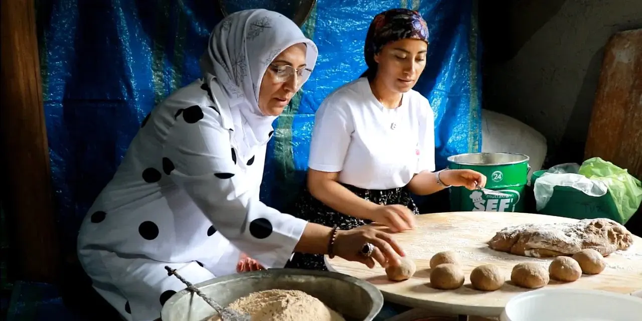 Dağdan topladıkları armutları kurutup un haline getirerek ekmek yaptıklarını söyleyen Hadimliler, “Dedemizden kalma tokmaklarla bu armutları dövüyoruz. Daha sonra kuruttuğumuz armutları değirmende un haline getiriyoruz. Bu unla yapılan ekmeğin tadı çok güzel oluyor. Yaklaşık 200 yıldır annelerimiz, ninelerimiz armut unundan ekmek yaparmış. Kuşaktan kuşağa aktarılan bir lezzet” ifadelerini kullanıyorlar.