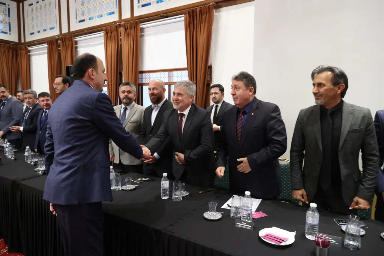 Konya Büyükşehir Belediye Başkanı Uğur İbrahim Altay, Konya Esnaf ve Sanatkarlar Odaları Birliği (KONESOB) Başkanı Muharrem Karabacak ile birlikte KONESOB'ta gerçekleştirilen seçimlerin ardından göreve devam eden ve yeni seçilen oda başkanlarıyla bir araya geldi.