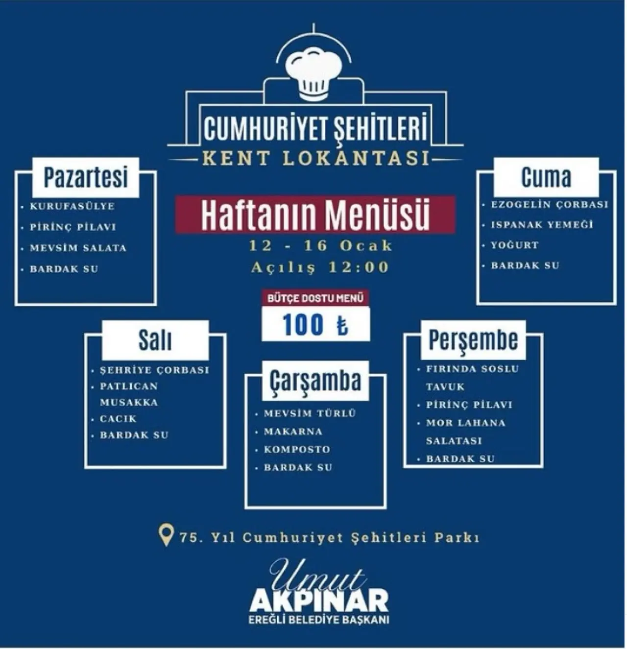 “CHP Belediyelerin sosyal demokrasi anlayışı imzasını attığı en önemli proje halkı yoksulluğa mahkûm etmemektir. Kent Lokantaları bu anlamda pek çok CHP belediyesinin imza projeleri olmuştur. Bize düşen de bu projeyi Ereğli’mizle tanıştırmaktır. Ereğli Kent Lokantası ile şehrimizin pek çok yerinde halkımıza yemek hizmeti verilecektir ve hemşerilerimiz CHP belediyeciliği ile yeniden tanışacaktır” ifadeleriyle açılan Kent Lokantası, diğer tüm il ve ilçe merkezlerinde olduğu gibi Ereğli’de de büyük ilgiyle karşılanmıştı. Lokanta açılışına CHP Genel Başkanı Özgür Özel de katılmıştı. Özel, Ereğli Belediye Başkanı Umut Akpınar ile birlikte yemek dağıtmış daha sonra tadına baktığı yemeklere tam not vermişti.