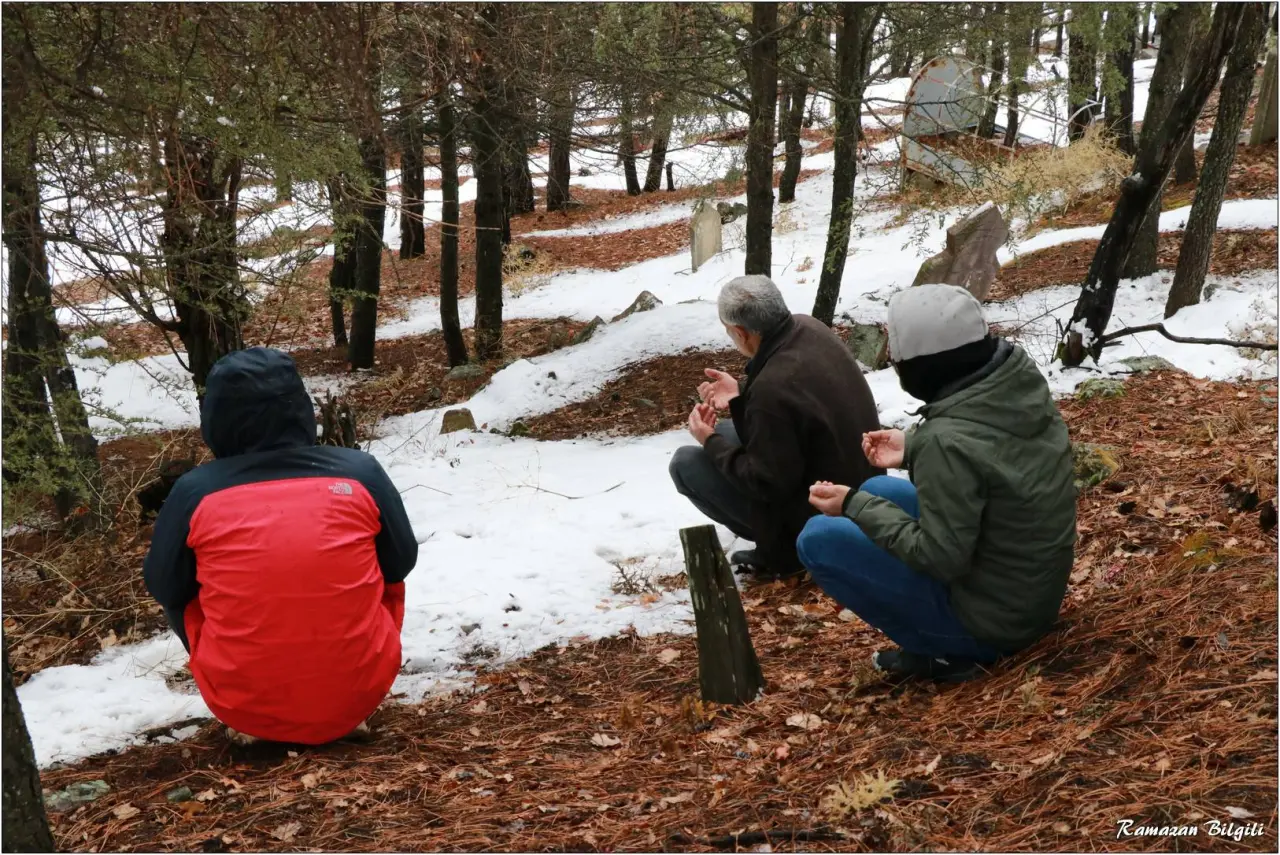 Mezarlık ziyareti sonrası, vatandaşlar karla örtülü kabirlerin yanına giderek yakınları için dua etti. Soğuk ve zorlu hava koşullarının etkisine rağmen, insanlar bu manevi görevi yerine getirirken hem hüzün yaşadı hem de duygusal bir bağ kuruldu.