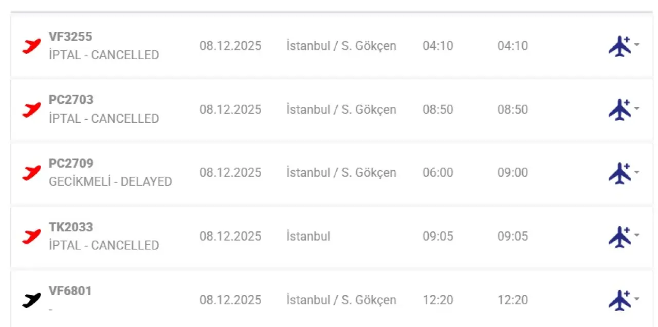 Öte yandan, Konya'da etkili olan sis nedeniyle uçak seferlerinde aksamalar oldu. Sabah saatlerindeki Konya-İstanbul uçuşları karşılıklı olarak iptal edildi.