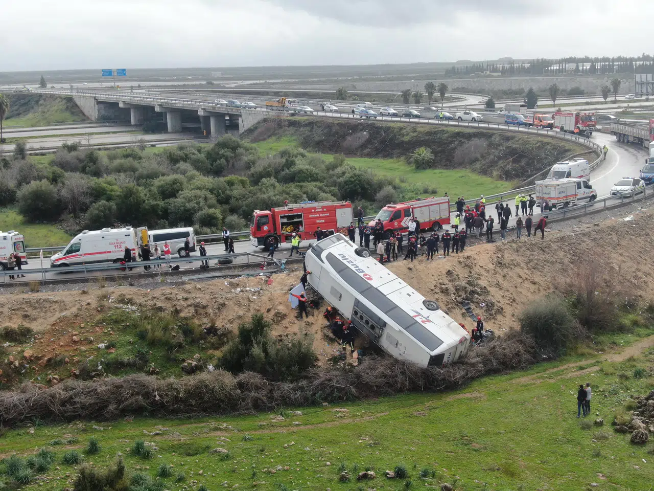 Antalya'da yolcu otobüsünün devrilmesi sonucu meydana gelen trafik kazasında hayatını kaybedenlerin sayısı 10'a yükseldi. Kaza, Döşemealtı ilçesi Kömücüler Mahallesi Kuzey Çevreyolu girişinde sabah saat 10.30 sıralarında meydana gelmişti. Dün akşam Tekirdağ'dan Antalya'ya doğru yola çıkan ve içerisinde 34 yolcu ile mürettebatın bulunduğu İzzet Karağaç idaresindeki 26 ABG 022 plakalı yolcu otobüsü, çok katlı kavşağa geldiği sırada yoğun sis ve kayganlaşan yol sebebiyle sürücünün direksiyon hakimiyetini kaybetmesi sonucu yol kenarındaki beton bariyerlere çarparak yan yatmıştı.