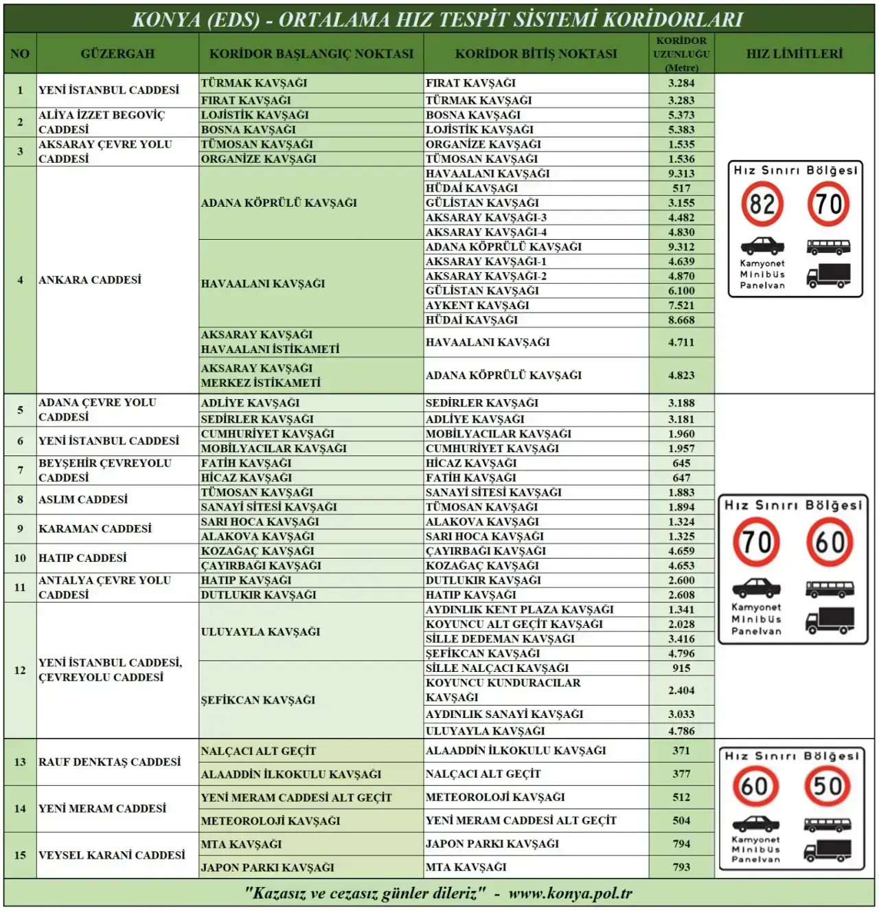 Konya'nın sabit radar noktaları belli oldu. Konya'da bulunan Elektronik Denetleme Sistemi noktaları hataları affetmiyor. Şehirde hız koridorunun ne anlama geldiğini bilmeyen sürücüler ise cezai işlem ile karşı karşıya kalıyor. Sürücüler EDS kameralarının bulunduğu noktadan belirtilen hız ile geçse de yine cezai işlem uygulanıyor. Karayolu kullanıcılarının can ve mal güvenliğini sağlamak amacıyla düzenli ve güvenli trafik akışını oluşturarak kural ihlalinde bulunan veya suça karışan araçların kameralar vasıtasıyla izlenerek görüntüleniyor ve tespit edilen araçlara cezai işlem uygulanıyor. Cezai işlem ise sürücülerin e Devleti'ne 20 dakika sonra düşüyor.