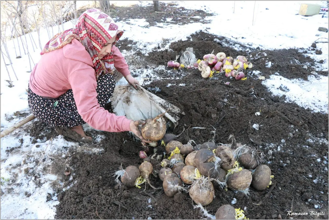 Bölgede yaşayan vatandaşlar, güz aylarında hasadı yapılan sebzeleri, kış boyunca tüketebilmek için toprak altına gömerek muhafaza ediyor. Karla kaplı ve yılın büyük bölümünde soğuk kalan toprak sayesinde ürünler, herhangi bir kimyasal ya da modern soğutma sistemi kullanılmadan aylarca bozulmadan saklanabiliyor.
