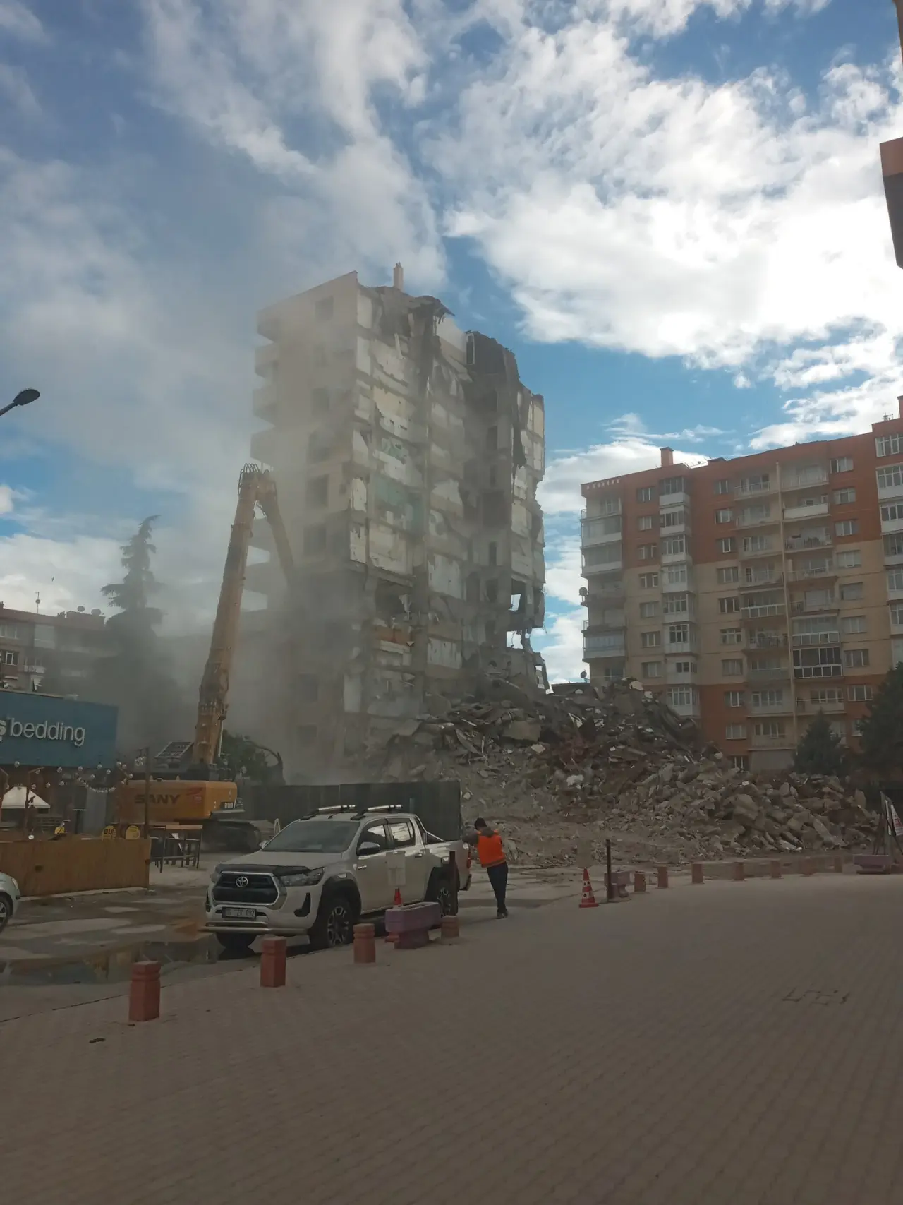 Yıkım ekipleri bölgede geniş güvenlik önlemlerinin alınmasıyla birlikte iş makinelerini çalıştırdı ve yıkım başladı.