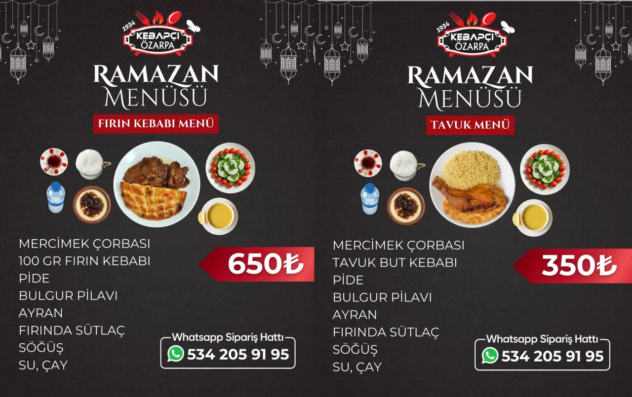 Şehirde Ramazan ayı menüsünde en düşük etliekmek ve but kebabı olarak belirlenirken bazı mekanlarda fiyatlar tavuk 650 TL'den etliekmek ise 750 TL'den başlıyor. Bu algıları tamamen kıran Muammer Özarpa, Tavuk But Kebabı menüsünü 350 TL'den çok sevilen lezzet Fırın Kebabını ise sadece 650 TL'den satışa sundu. Kalabalık gelen vatandaşlar içinde çözüm üreten Özarpa, 500 gramdan 5 kiloya kadar çıkan menüler ile uygun fiyat sağlıyor. Arlı Sanayi Sitesi ve Selim Sultan Şubesi ile hizmet veren Özarpa, boyun kebabının kilosunu sadece 1200 TL'den satıyor. İftarda fırın kebabının yanında mercimek çorbası, pide, bulgur pilavı, içecek, sütlaç, söğüş ve sınırsız çay eşlik ediyor.