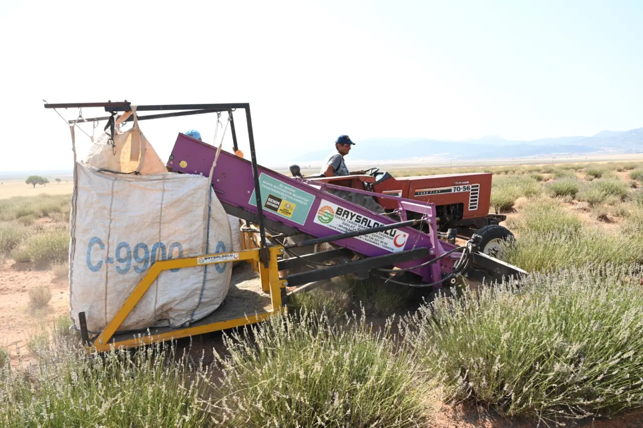 Konya Büyükşehir Belediyesi’nin desteğiyle Güneysınır’da alternatif ürün olarak ekilen lavantaların hasadı her yıl gerçekleştiriliyor. Üreticiler, hasadını yaptıkları lavanta, kekik, adaçayı gibi tıbbi ve aromatik bitkileri, Konya Büyükşehir Belediyesi tarafından 2020 yılında Güneysınır ilçesinde inşa edilen damıtma tesisine getirerek, bu bitkilerin uçucu yağlarını çıkarıyor.