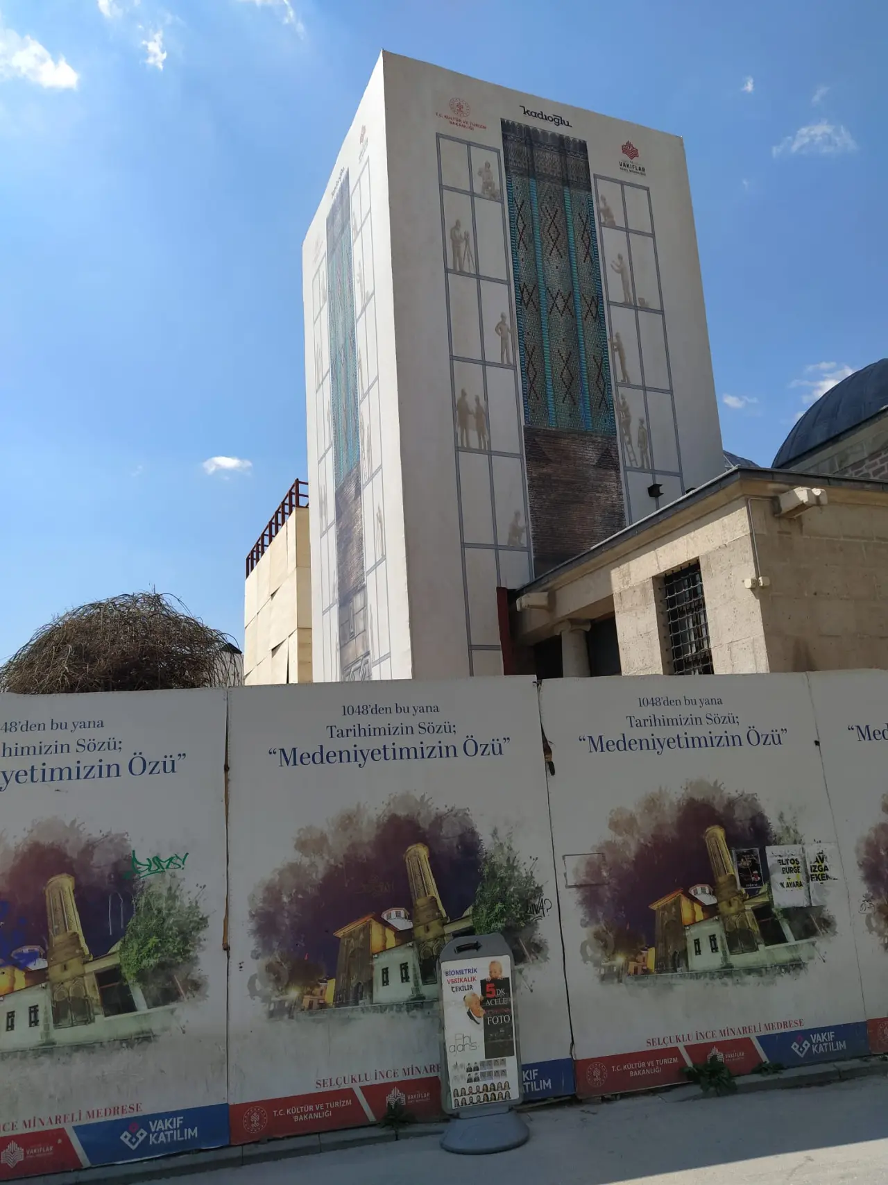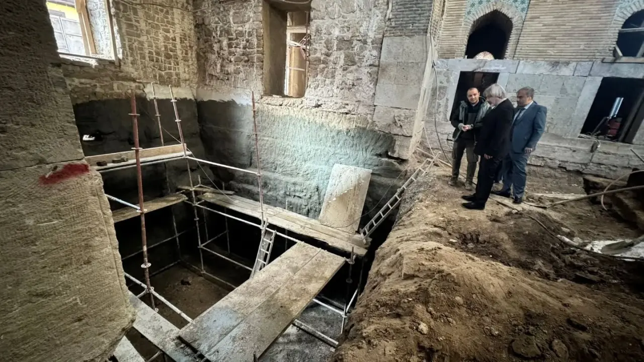 Konya’da her gün önünden binlerce kişinin geçtiği İnce Minareli Medrese’de restorasyon çalışmaları çok uzun süredir devam ediyor. Çalışmalar kapsamında bir kez daha temel kazısına başlayan ekipler gün geçtikçe daha derine iniyor. Vakıflar Bölge Müdürü Yılmaz Kılınç, yaklaşık 8 asırlık vakıf eseri İnce Minareli Medrese'de Vakıflar Genel Müdürlüğü himayelerinde yürütülen restorasyon çalışmalarını yerinde inceledi. Kılınç’ın kamuoyuyla paylaştığı fotoğraflarda tarihi yapının temelinde derin kazılar yapıldığı gözlemlendi. Özellikle yağışlı periyotlarda temele inen suların neden olduğu deformeler ve yapıdaki taşlarda oluşturduğu erimeler (taş kanseri) nedeniyle temele ciddi oranda eğilen restorasyon ekibi burada kalıcı çalışmalara imza atıyor.
