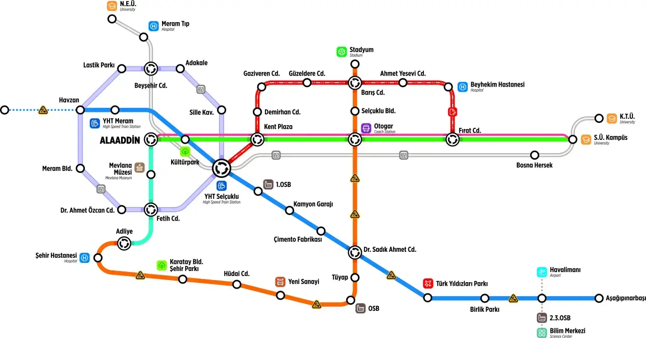 Akabinde ise Meram’ı Karatay’ı ve Selçuklu’yu birbirine bağlayacak Fetih Caddesi-Ahmet Özcan Caddesi Tramvay Hattı’nı yapımı için mesai harcanacak. 19,4 kilometrelik Fetih Caddesi- Ahmet Özcan Caddesi tramvay hattı üç ilçeyi birbirine bağlamakla kalmayıp şehir merkezini ring şeklinde saracak. Sekizgen bir petek şeklinde ilerleyecek bu hattın mevcut ve planlanan tüm raylı sistem hatlarıyla da entegrasyonu olacak.