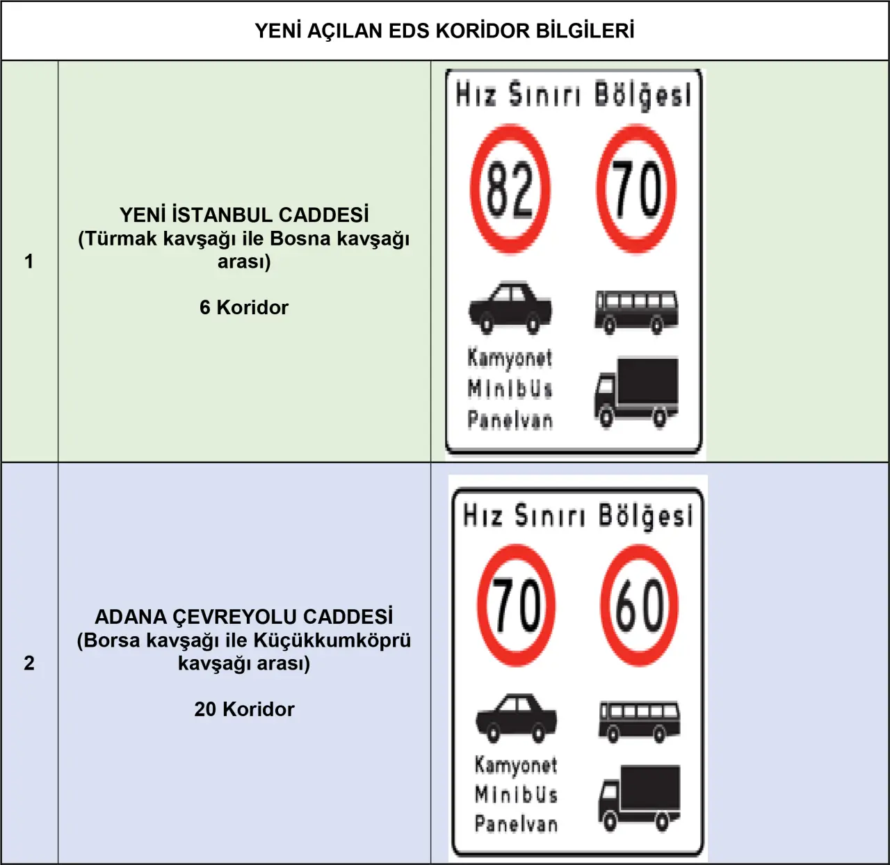 Konya Valiliği'nden yapılan açıklamada, “Karayolu kullanıcılarının can ve mal güvenliğini sağlamak, düzenli ve güvenli trafik akışını oluşturarak kural ihlalinde bulunan veya suça karışan araçları tespit etmek amacıyla EDS-2(Revize) Projesi kapsamında Yeni İstanbul Caddesi ve Adana Çevre Yolu Caddelerinde Elektronik Denetleme Sistemlerinin bir alt bileşeni olan Ortalama Hız İhlal Tespit Sistemlerinin kurulumu tamamlanarak 20.10.2025 tarihi itibari ile aktif olarak çalışmaya başlayacaktır. Bu kapsamda ilimizde kurulumu tamamlanan EDS-2(Revize) Projesi Ortalama Hız Tespit Sistemlerinden oluşabilecek idari para cezalarına maruz kalmamak için vatandaşlarımızın yerleşim yeri içerisindeki karayollarında yatay ve düşey işaretlemelerle, aracın türüne göre belirtilen azamı hız kurallarına uyması önem arz etmektedir” ifadelerine yer verildi.