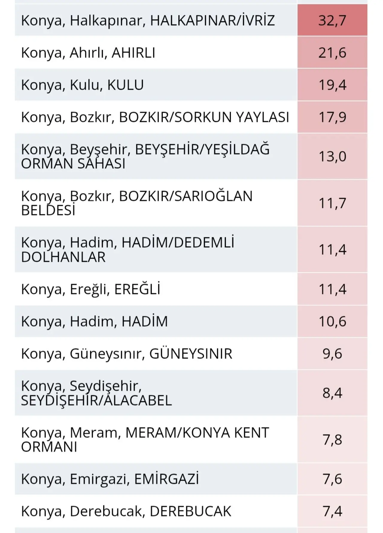 Konya'ya sarı kodlu veren Meteoroloji Genel Müdürlüğü ardından şehrin bir çok ilçesinde kar hasreti sona erdi. Yağışlar merkeze 30 kilometre yakınlarda yaklaşık 15 cm örtü yaptı. Sistemde yüzü gülen ilçeler ise Ahırlı, Hadim, Ereğli, Halkapınar ve Yalıhüyük ilçesi ile Toros Dağları oldu.