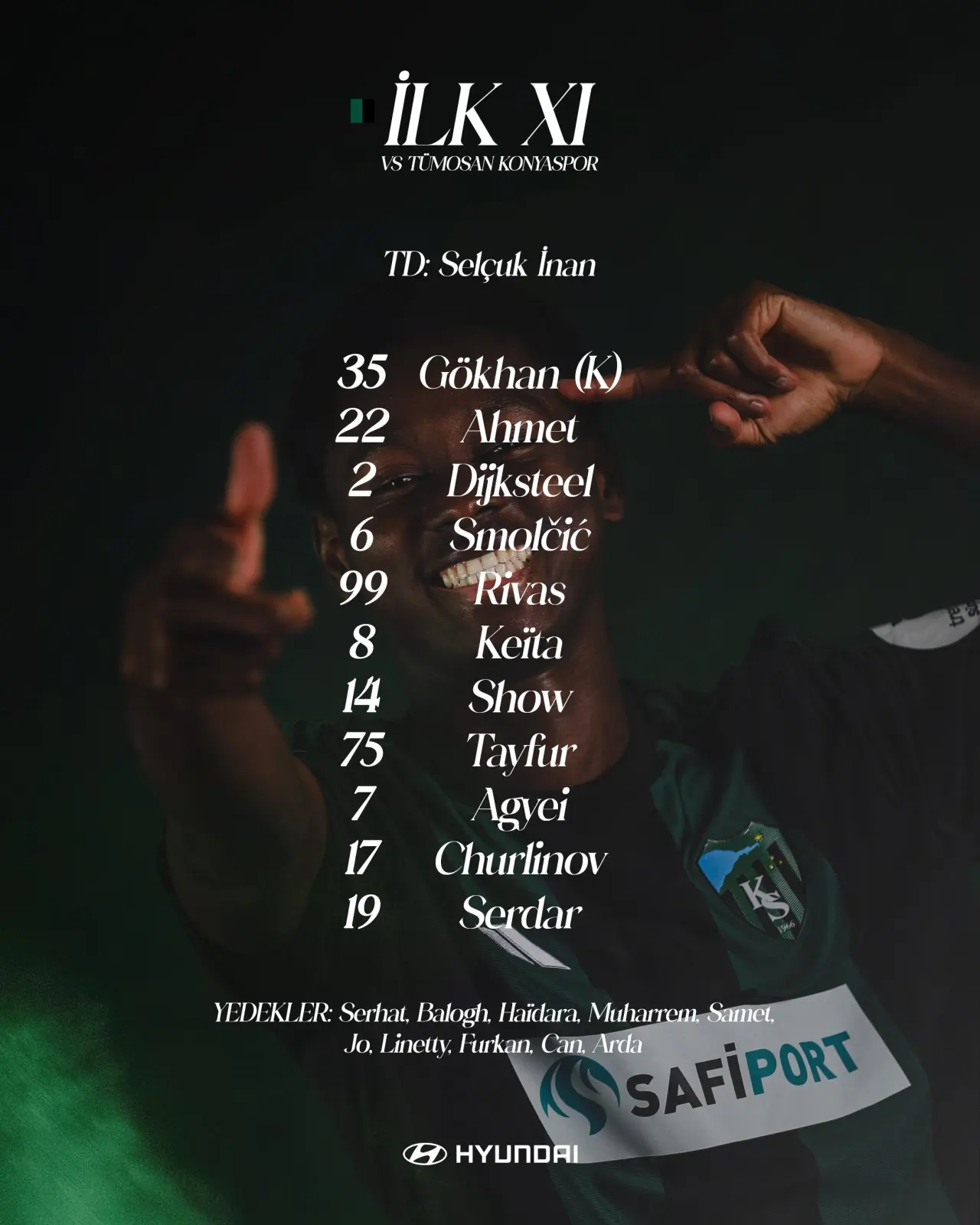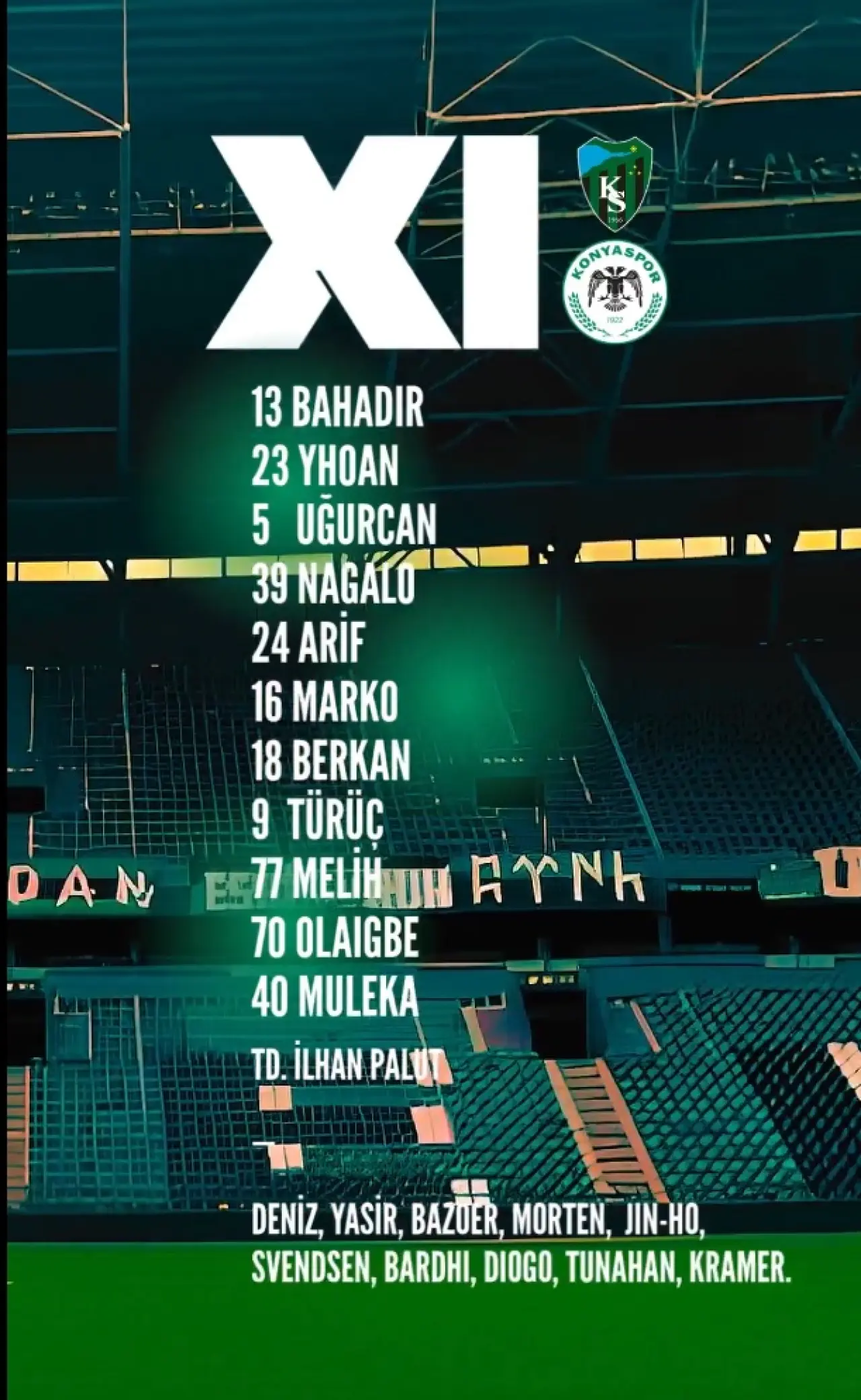 Zorlu maç öncesinde Konyaspor’da sakatlığı bulunan aynı zamanda kart cezalısı Adil Demirbağ bugün takımı yalnız bırakıyor. Yeşil-beyazlılarda Deniz Ertaş, Yhoan Andzouana, Riechedly Bazoer, Berkan Kutlu ve Morten Bjorlo ceza sınırında yer alıyor. Kocaelispor’da ise sakatlıkları devam eden Jovanovic, Petkovic ve Wieteska maç kadrosunda yok.