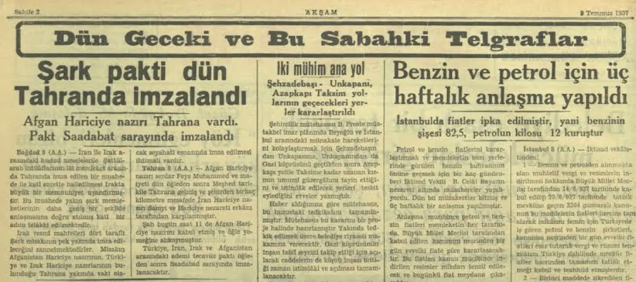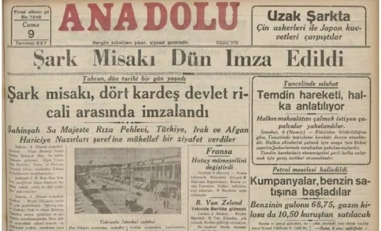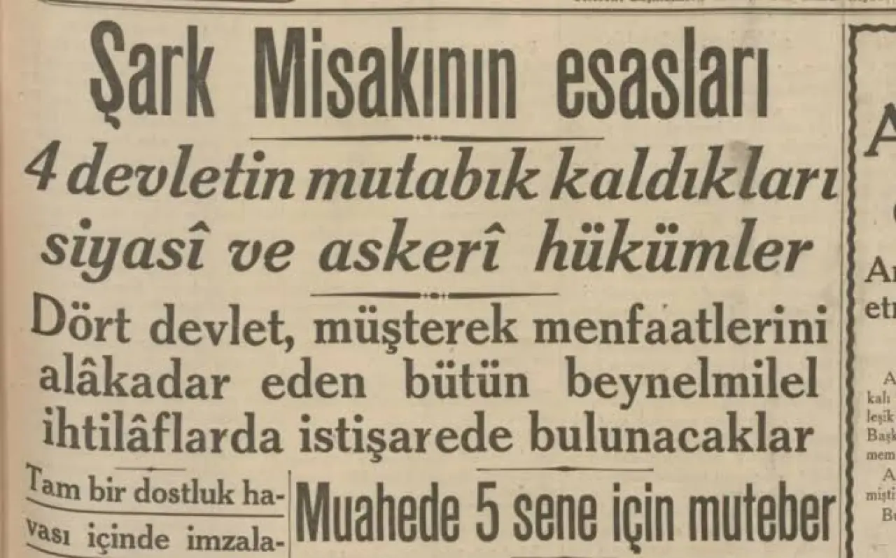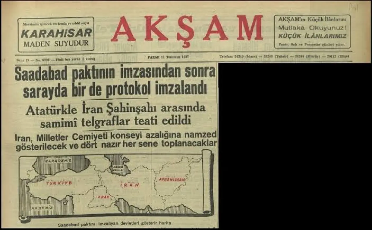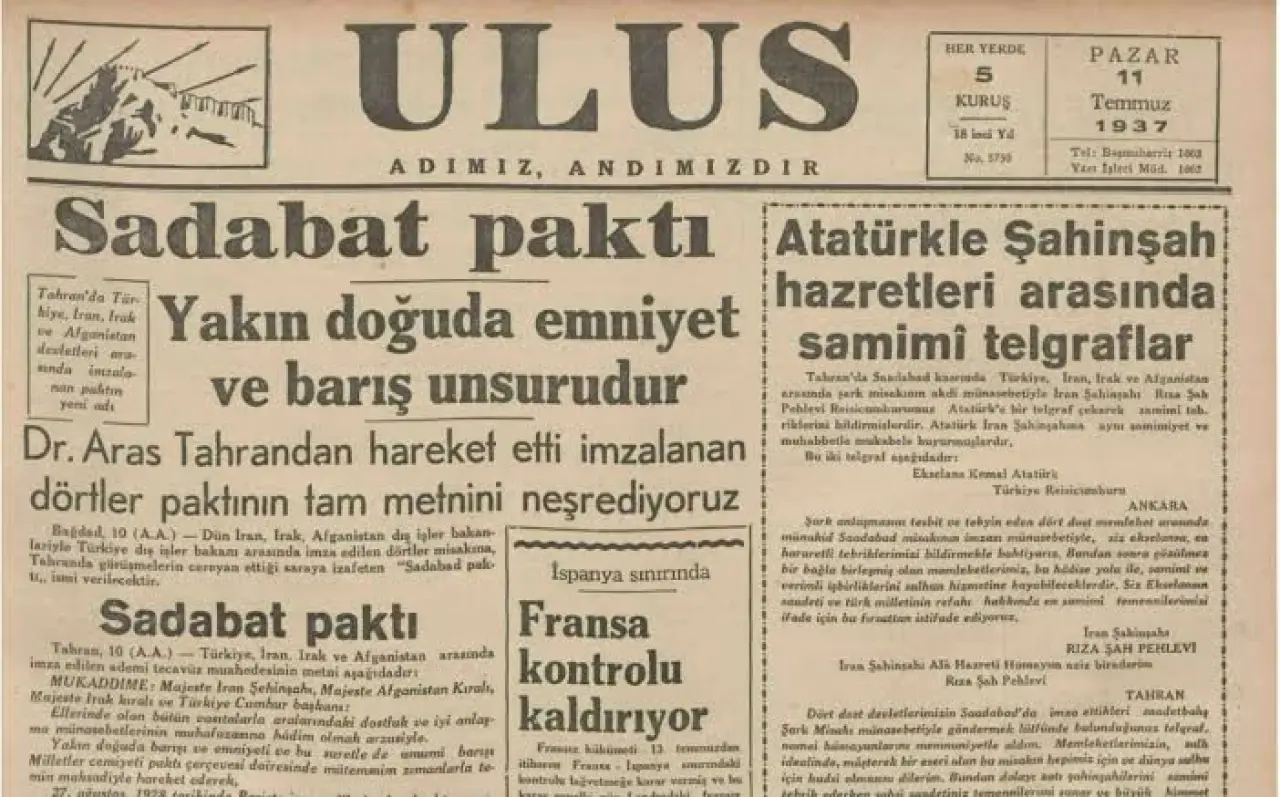 Batı sınırlarını güvence altına aldıktan sonra dikkatini Ortadoğu’ya veren genç Türkiye Cumhuriyeti, 8 Temmuz 1937’de İran, Irak ve Afganistan'la kafa kafaya vererek Sadabat Paktı olarak bilinen dörtlü saldırmazlık antlaşması imzalandı.