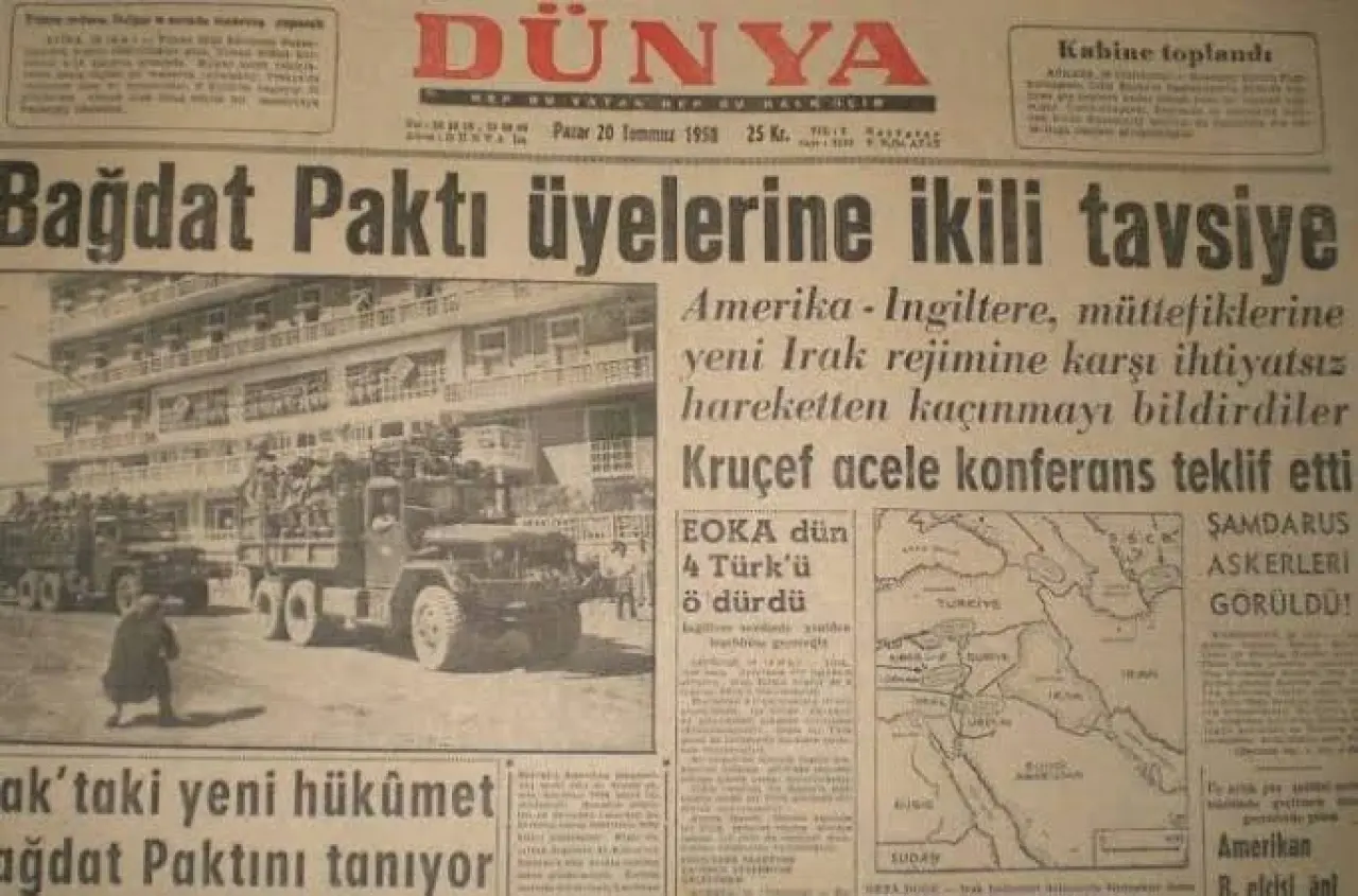 Komşu ve kardeş Irak'ta, 14 Temmuz 1958 tarihinde ülke ve bölge tarihinin seyrini değiştiren çok kanlı bir darbe yaşandı. Irak ordusu içindeki bir cunta, bu tarihte, Başbakan Nuri Said ile genç Kral II. Faysal’ın katledildiği kanlı bir darbe sonucu ülke idaresine el koydu.
