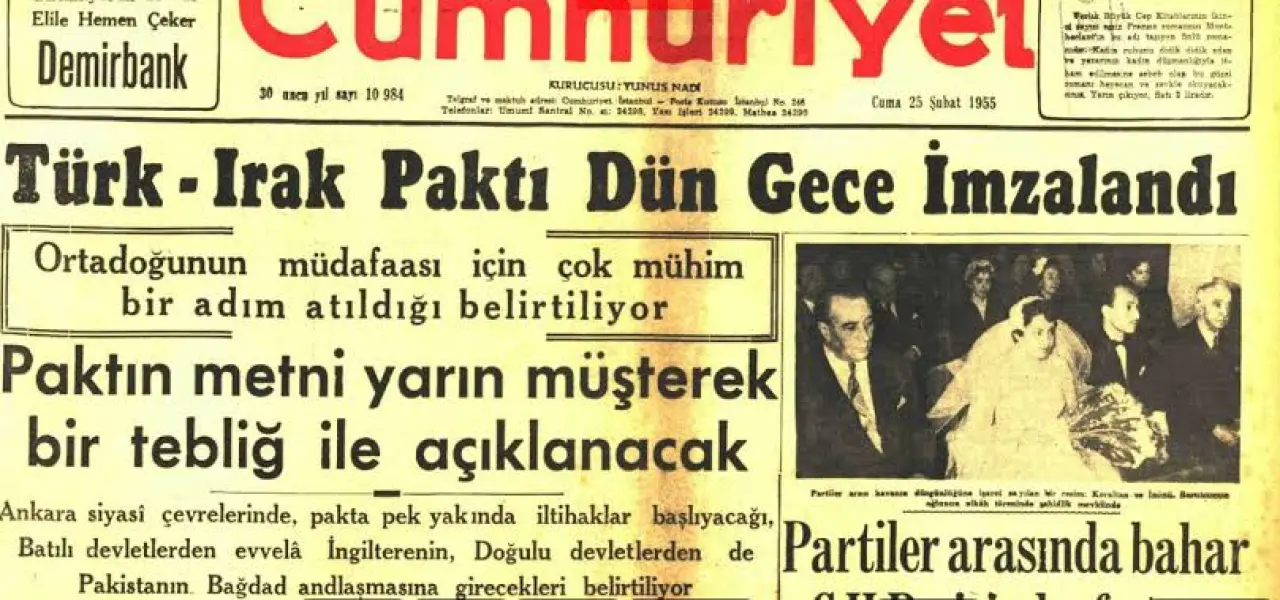 Böylece Atatürk’ün gençlik ve askerlik yıllarında tasarladığı Türkiye-Suriye-Irak Konfederasyonu ve daha sonra cumhurbaşkanı olarak kurduğu Sadabat Paktı projeleriyle inşa etmeye çalıştığı barış, refah ve özgürlük havzasına dönüşmüş bir Ortadoğu yolunda atılan adımların bir meyvesi daha, yani Bağdat Paktı ete kemiğe bürünüyordu.