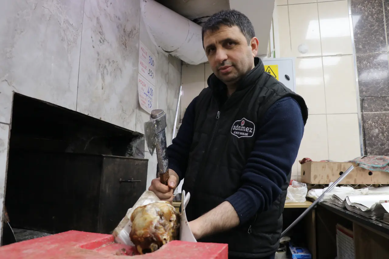 Kış sofralarının vazgeçilmez lezzeti kelle, 16 saatlik zahmetli hazırlık süreci ve taş fırında pişirme tekniğiyle hem yöre halkından hem de turistlerden yoğun ilgi görüyor. Enerji ve şifa kaynağı olarak bilinen doğal kelle, 300 liradan satışa sunuluyor.