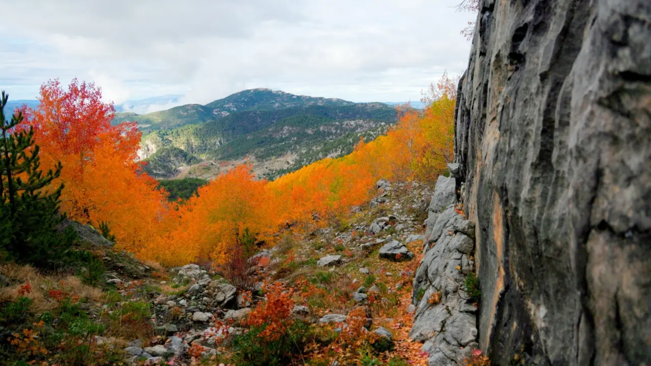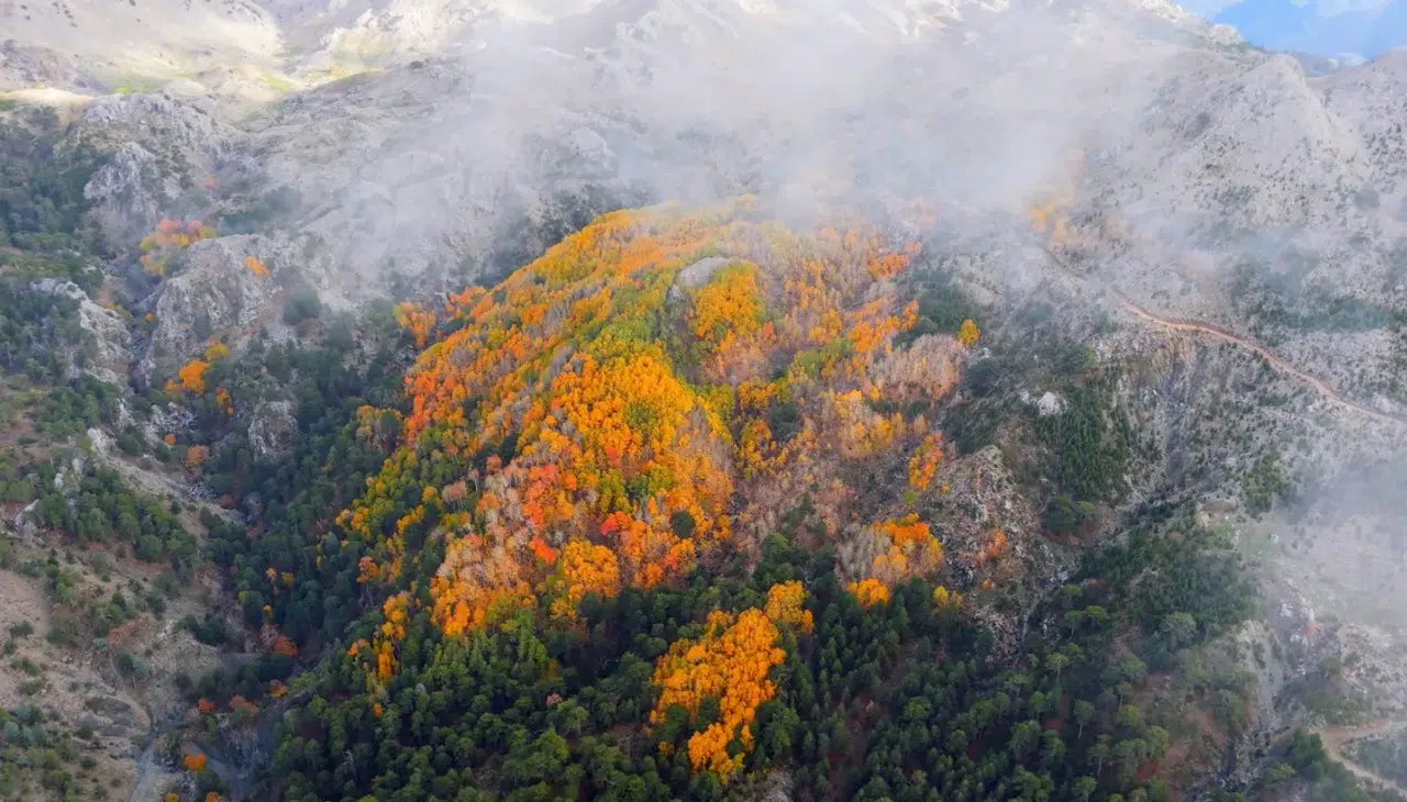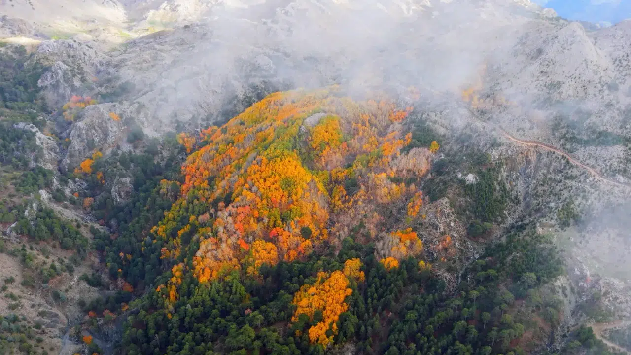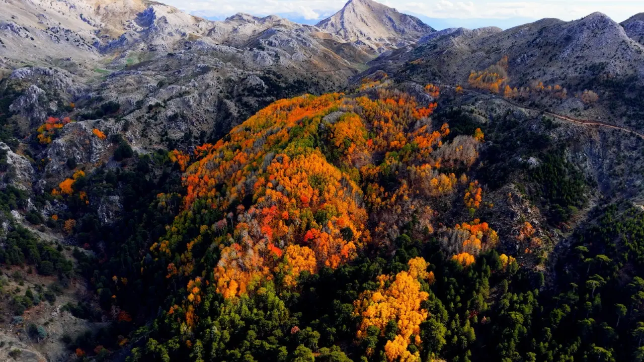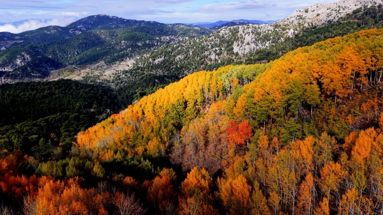 Denizli'nin Çameli ilçesi, zengin florası ve yüksek endemik tür çeşitliliğiyle dikkat çekiyor. İlçenin önemli doğal alanlarından biri olan titrek kavak ormanları ise özellikle ziyaretçilerine görsel bir şölen sunuyor. Sarı, kızıl, turuncu ve yeşilin tonlarıyla oluşan renk cümbüşü havadan görüntülendi.