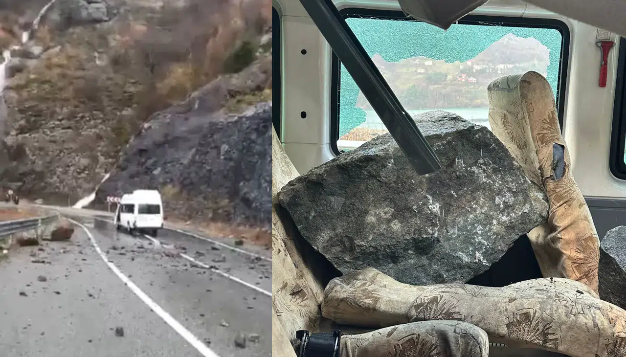 Olay, Borçka ilçesi İbrikli mevkisinde meydana geldi. Edinilen bilgilere göre, yamaçtan kopan dev kaya parçaları, Artvin yönünde giden minibüsün üzerine düştü. Kaya, minibüsün tavanını parçalayarak araç içerisine girerken, koltuğun üzerine düştü. Kazanın şiddetiyle minibüs büyük hasar aldı ve kullanılamaz hale geldi.