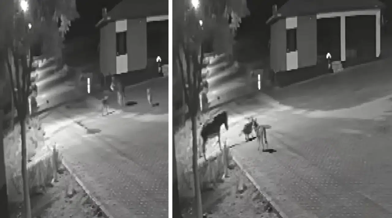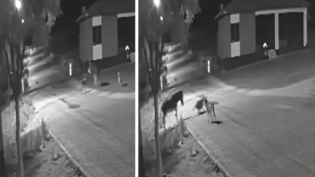 Edinilen bilgiye göre, Kadınhanı ilçesi Örnekköy Mahallesi sakinleri sokakta bir hayvanın parçalandığını fark etmesi üzerine güvenlik kameralarını inceledi. Mahalle sakinleri inceledikleri görüntülerde, yerleşim yerine gece saatlerinde kurt sürüsünün geldiğini tespit etti. Görüntülerde, sokakta gezen aç kurtların, fark ettikleri eşeği saldırarak parçaladıkları görülüyor. Mahalle sakinleri, vatandaşları kurtların saldırılarına karşı dikkatli olmaları noktasında uyarıda bulundu.