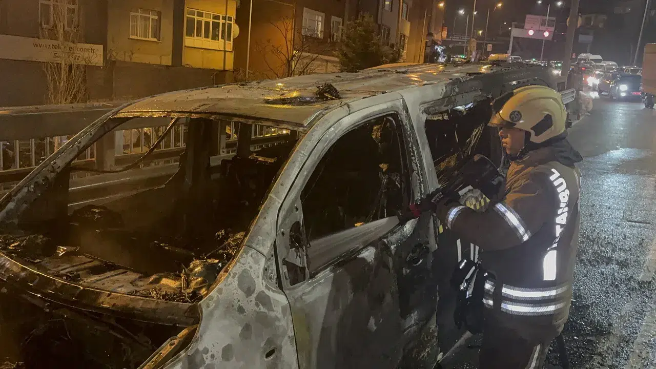 Yangın, saat 21.00 sıralarında Kağıthane Okmeydanı Viyadüğü meydana geldi. Edinilen bilgiye göre, Ali D. idaresindeki ticari taksi, seyir halindeyken sol fardan dumanlar yükseldi. Rüzgarın da etkisiyle aracı alevler sardı. Sürücü, panik içinde aracı yol kenarına çekerek, içinde bir çocuğun da yolcuları tahliye etti. İhbar üzerine olay yerine polis, itfaiye ve sağlık ekipleri sevk edildi. Ekiplerin yarım saatlik çalışmasının ardından yangın söndürüldü. Yangın sonucu araç kullanılmaz hale geldi.