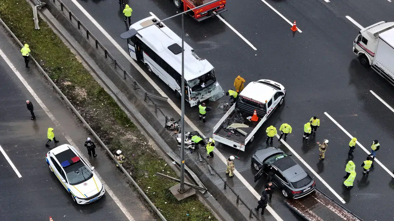 İstanbul'da polisleri görev noktasına götüren servis aracı sabah saatlerinde Kuzey Marmara Otoyolu Başakşehir-Habipler bağlantı noktasında bariyere çarptı.